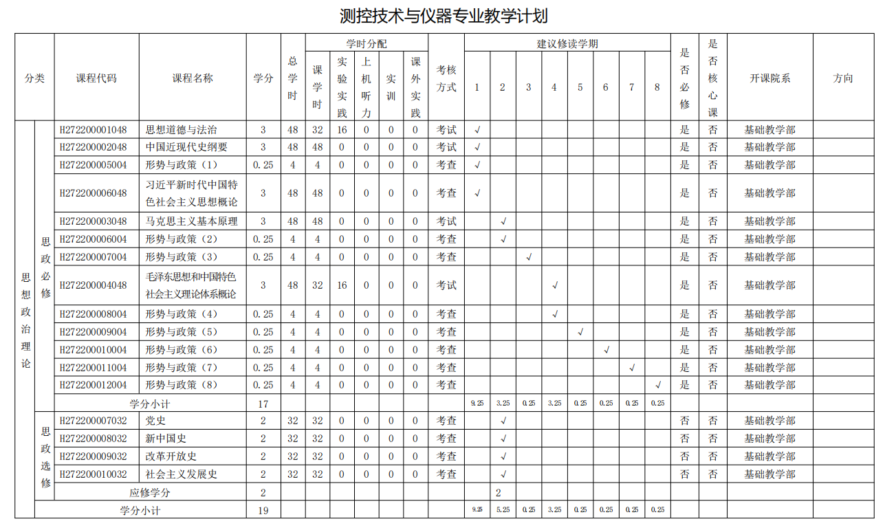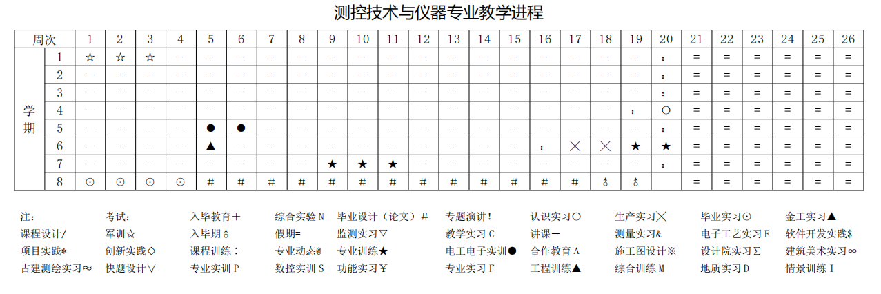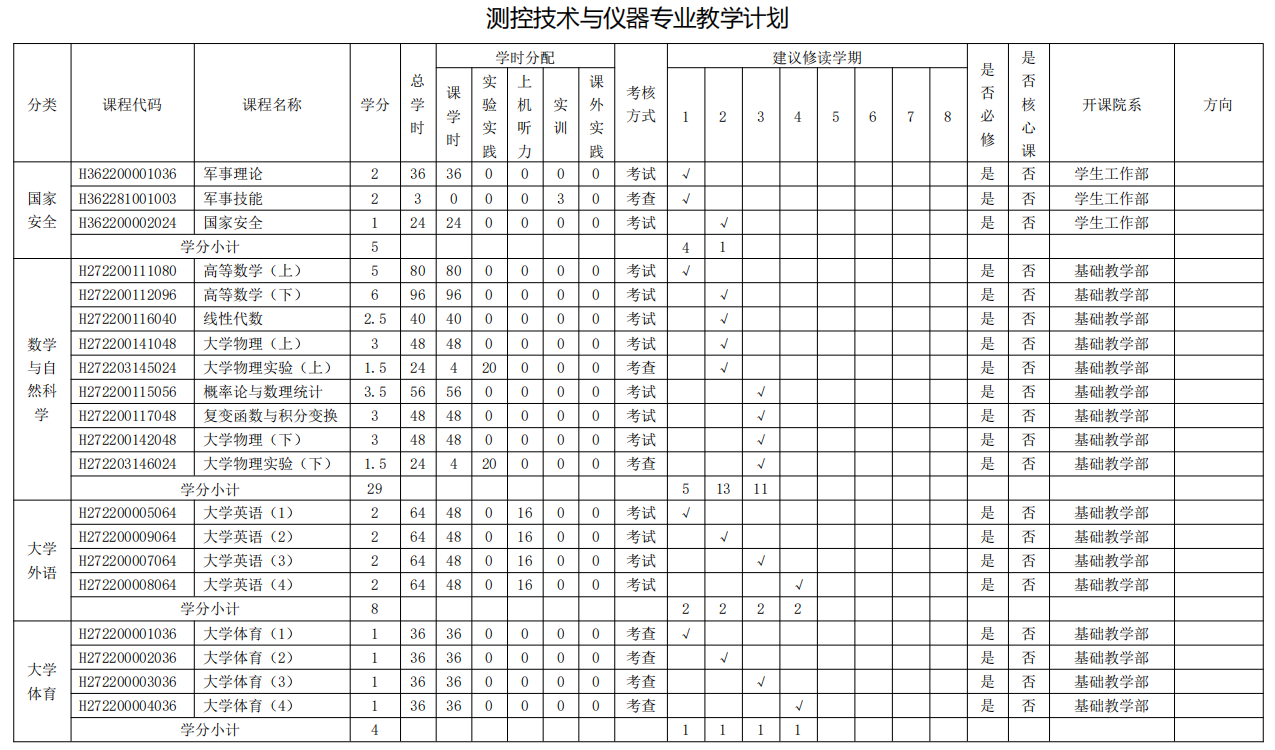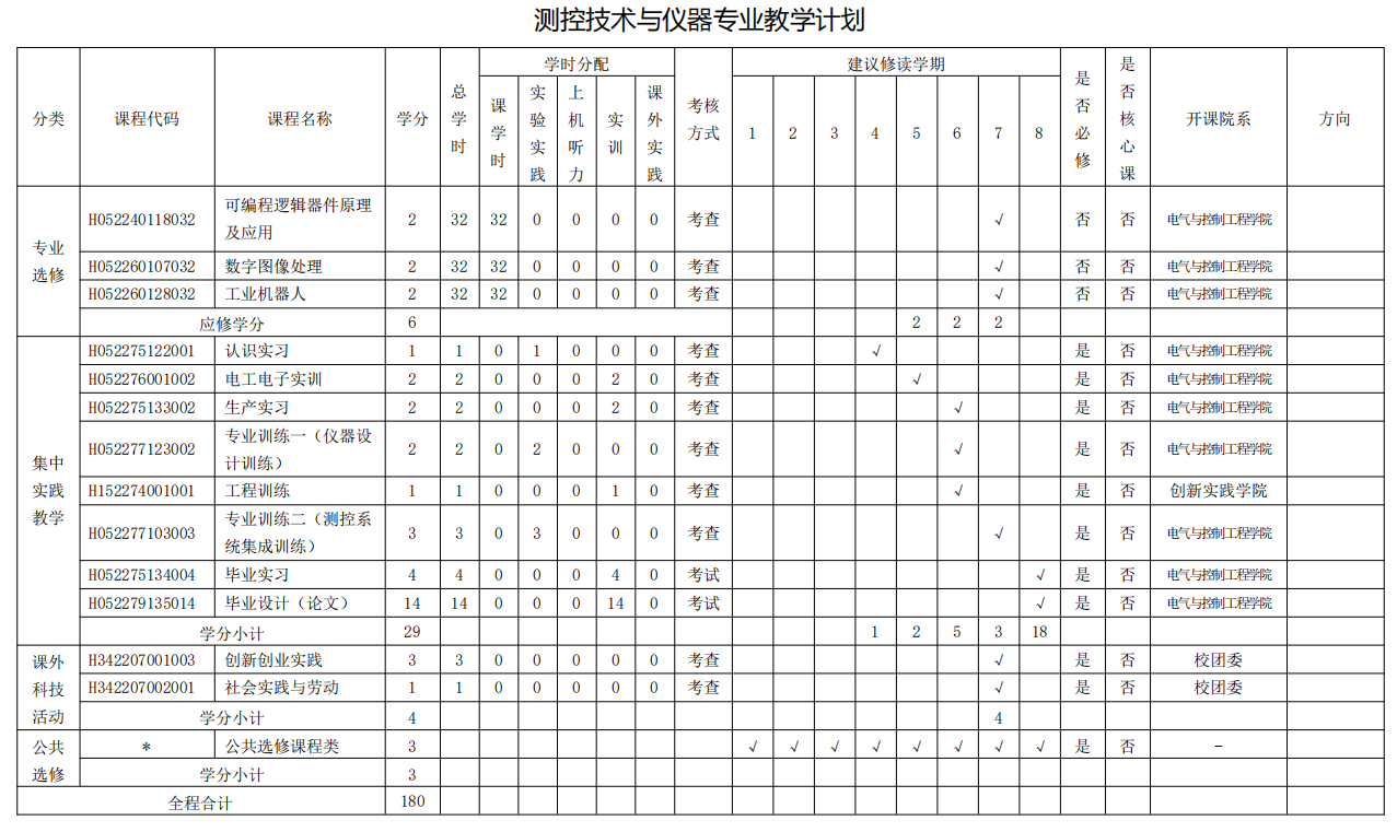认识实习、工程训练、电工电子实训、专业训练一(仪器设计训练)、专业训练二(测控系统集成训练)、生产实习、毕业实习、毕业设计。