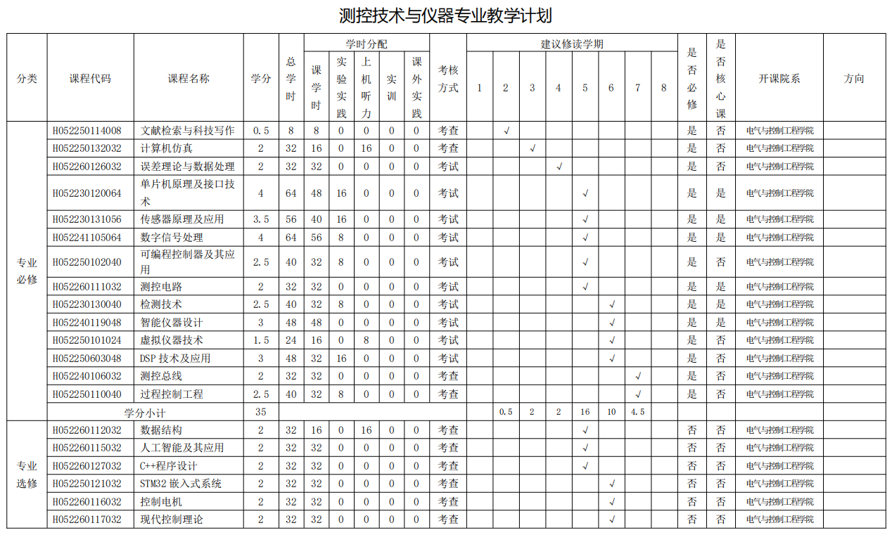 本专业建设起源于建校初期的机电科,1989年建立工业自动化仪表专科,1993年招收工业自动化仪表本科生,1998年更名为测控技术与仪器专业,迄今为止向国内仪器仪表行业输送了大量应用创新型工程人才。