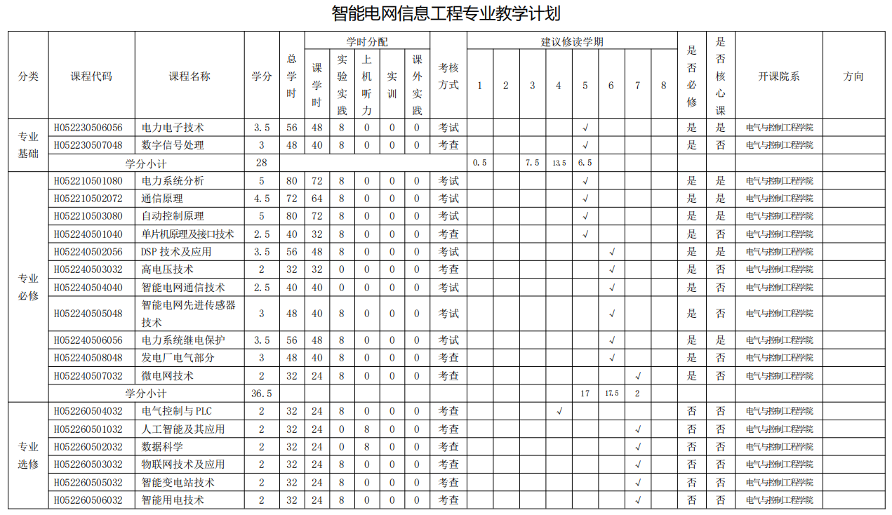 智能电网信息工程专业面向国家智能电网建设之急需,围绕新能源发电与智能接入技术、电网智能调度与控制技术、电能计量与监测、计算机与网络技术等领域,形成“电气工程+信息工程”的新工科研究特色。培养具有国际视野、社会责任感和创新能力的应用创新型专门人才,使学生具有从事智能电网信息工程领域的设计、研究、开发和服务等工作的能力。
