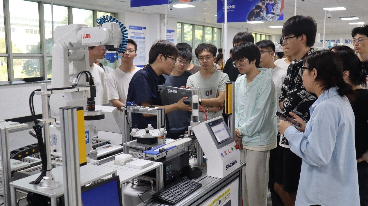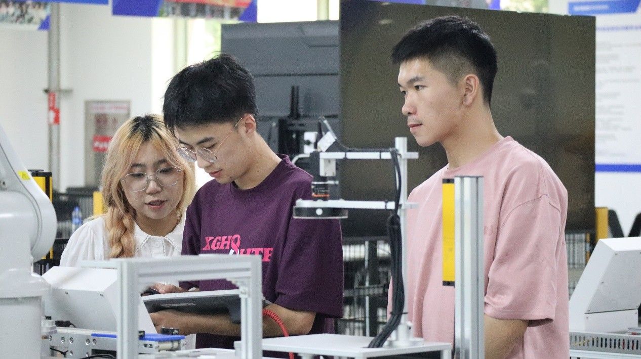 在新松资深工程师的指导下,学生们系统学习工业机器人的操作精髓。