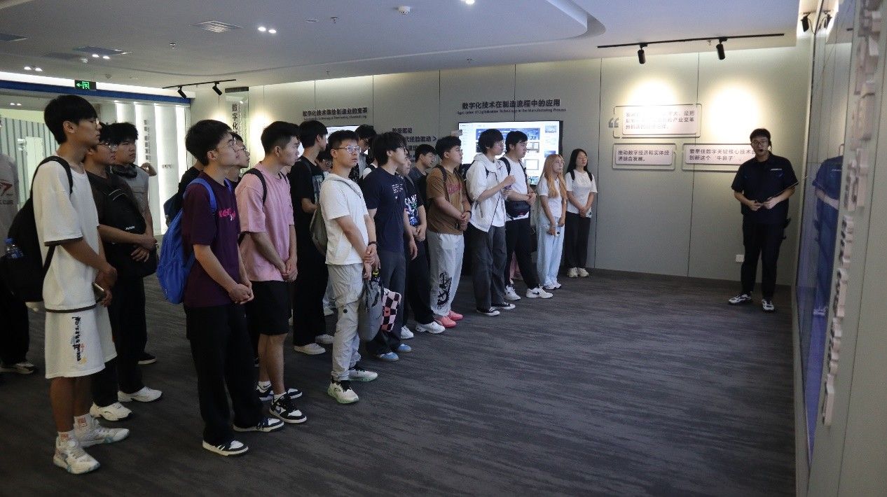 实习首站,学生们沉浸于新松数字化展厅,了解企业在数字化应用、工业机器人、工业软件、VR(虚拟现实)技术及产教融合领域所取得的创新成果与突破。在讲解员引导下,同学们深入感知了其“基于智能制造,聚焦数字技术”的核心理念,重点了解中德合作的人机协作机器人技术等尖端成果;体验了VR/AR技术在虚拟教学、远程协作及安全培训中的创新应用;认识了支撑智能制造的核心工业软件实力;并深刻理解了新松教育践行产教融合的使命担当,为后续实习奠定了坚实基础。