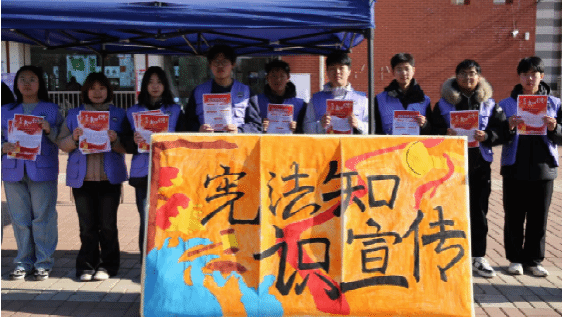 学院精心设计系列宪法宣传海报,内容涵盖宪法的地位、宪法最显著特征、宪法的颁布时间、公民基本权利与义务、国家根本制度等关键知识点。同时,学院还通过学生干部与过往同学进行“面对面”零距离交流。他们围绕海报上的核心内容,结合生活实例进行细致解读,针对同学们提出的“宪法如何保障青年权益”等问题逐一解答,让宪法知识在轻松交流中自然传递,让法治精神在双向沟通中深度渗透。