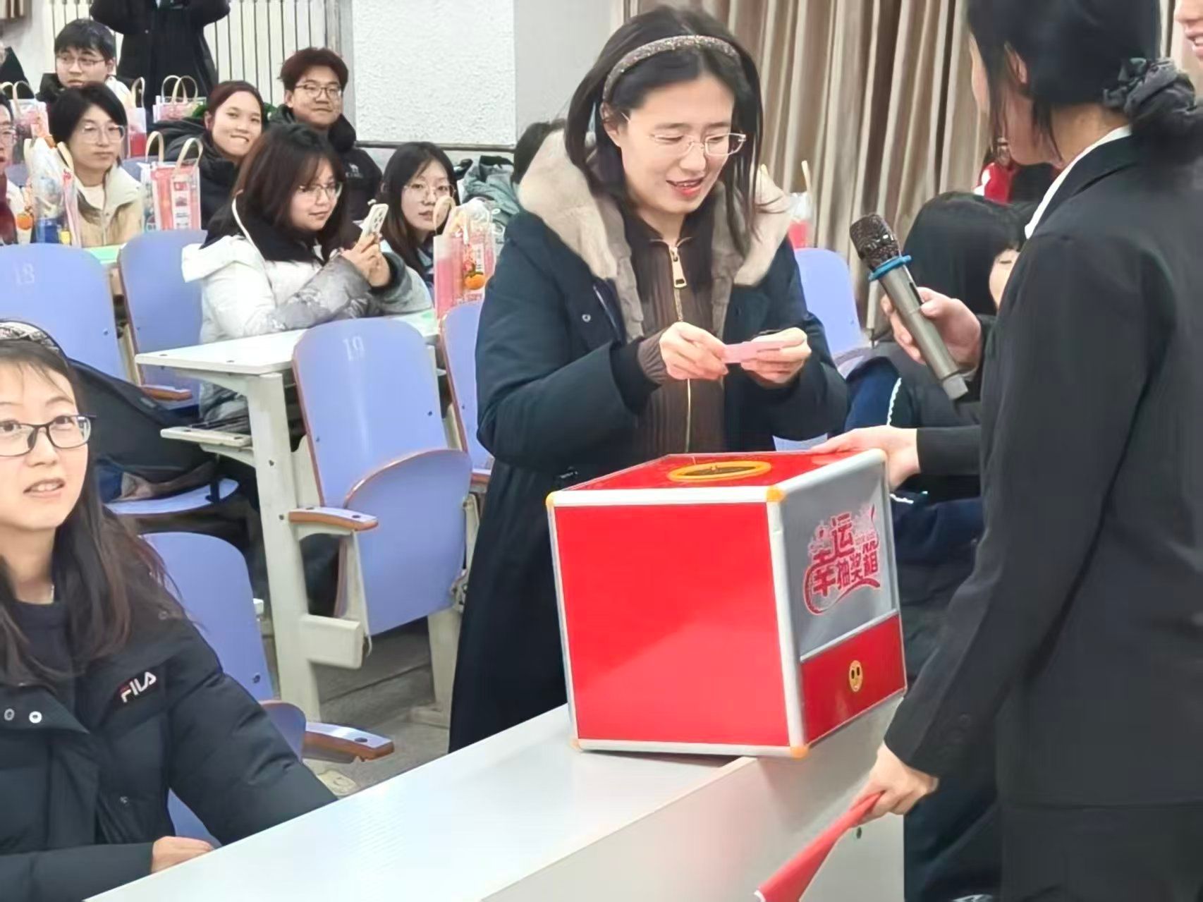 三轮抽奖依次送出寓意“脚下有路、步履从容”的祝福袜、“风雨无阻、学院为伞”的定制雨伞,以及象征“温暖长久、情谊永存”的学院logo保温杯。每一份奖品都承载着独特的寓意,也寄托着全院师生对考研学子顺遂无忧、前程似锦的真诚祝愿。