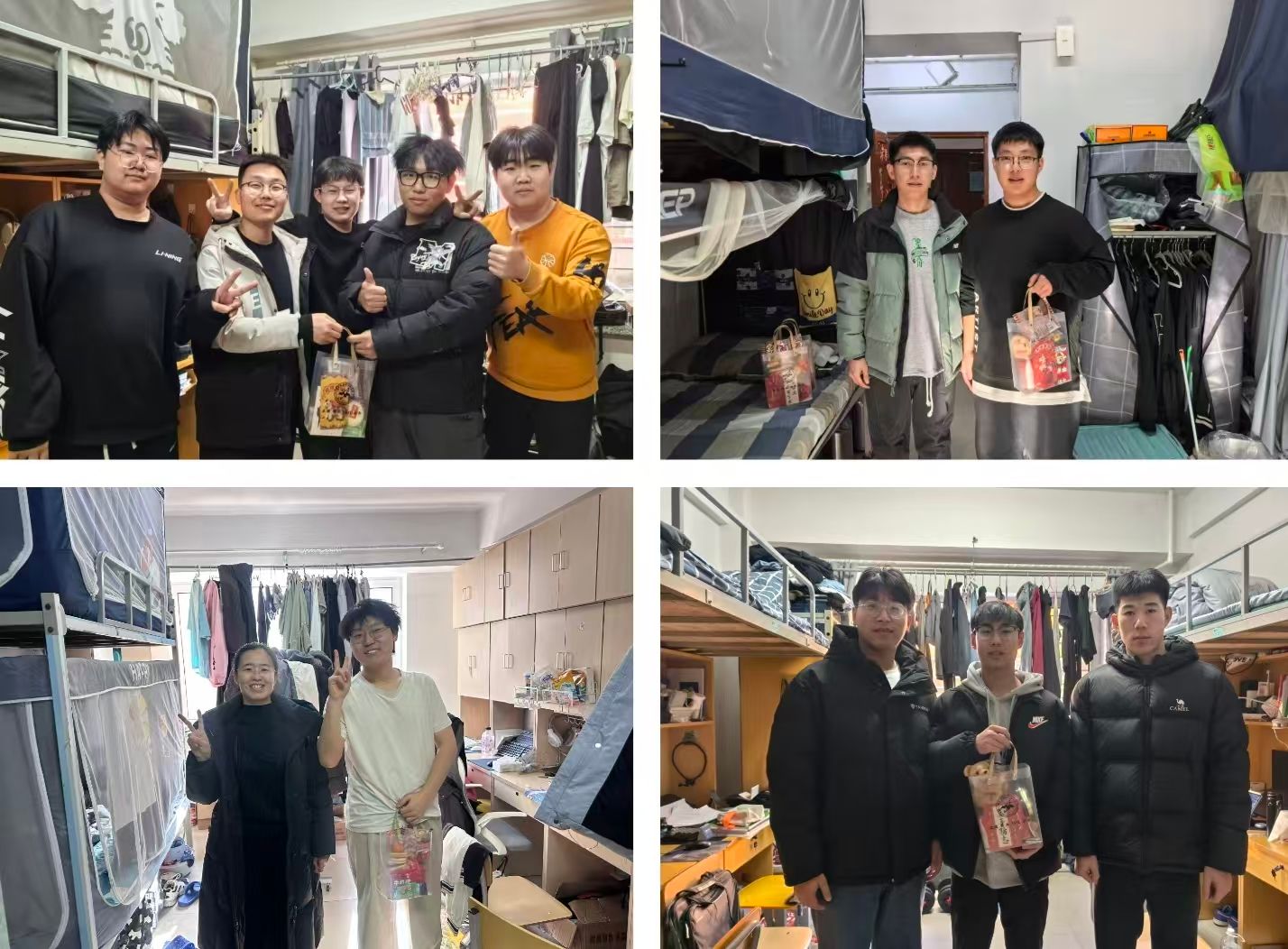 辅导员们也分别走访分管班级寝室,为同学们送上新年礼品,传递学院的关怀与温暖。并鼓励同学们在新的一年里明确目标、奋发向上,在学业与生活中不断突破自我。