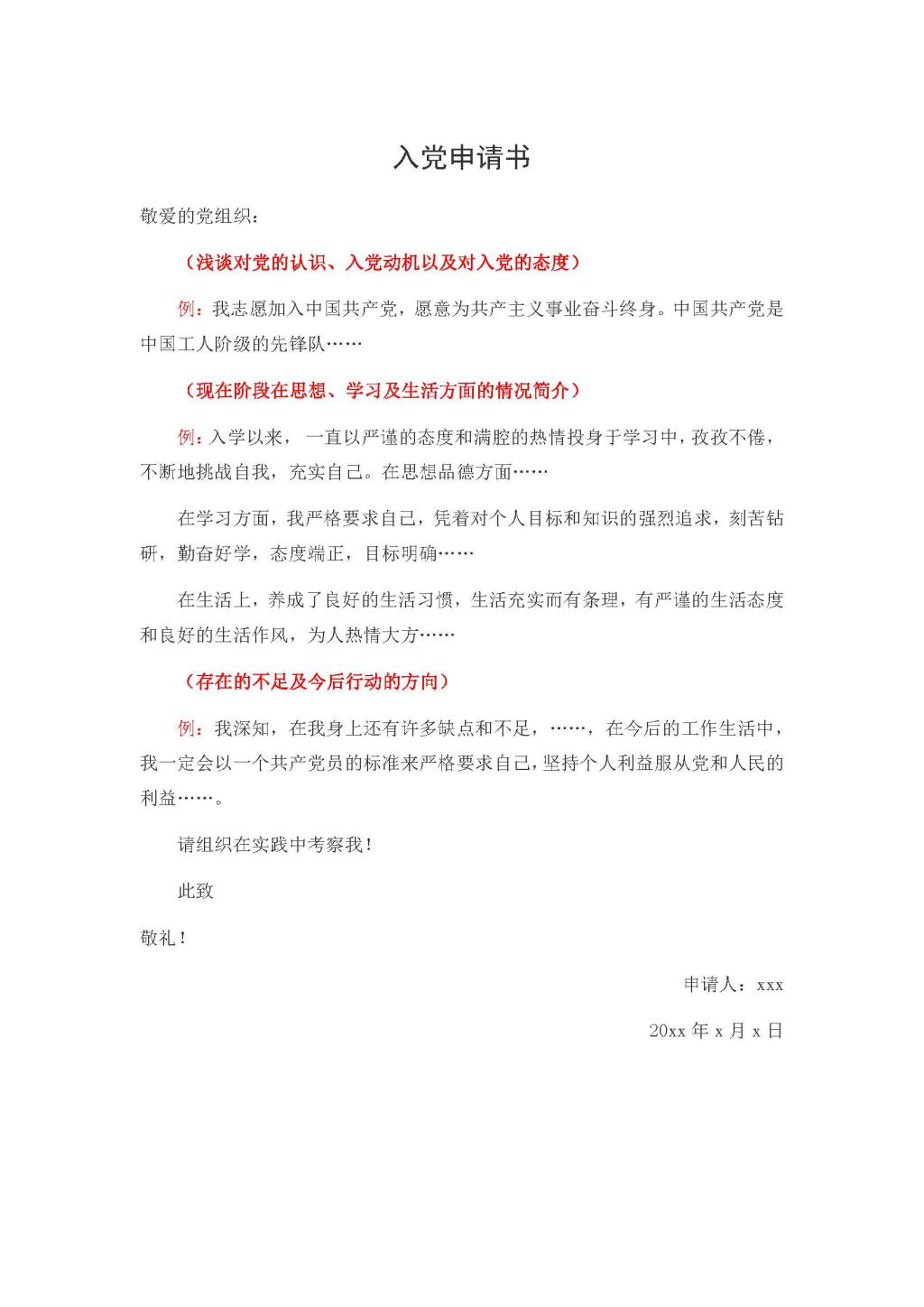 第二, 称谓。次行顶格写称谓,一般写:“敬爱的党组织”,后面加冒号,表示有话说。