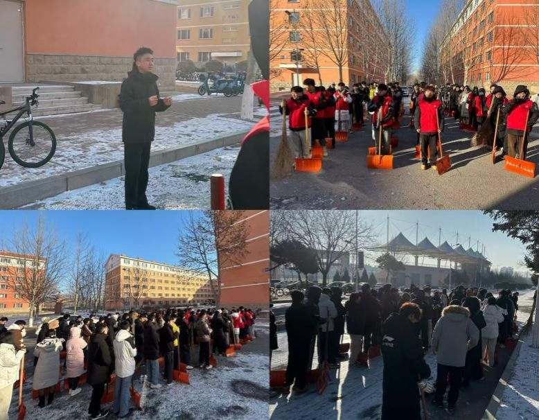 本科生党支部以雪为令、迅速行动。12月14日,在各党支部书记的带领下,本科生四个党支部组成专项扫雪小队,奔赴校内静远楼、行政楼、学生公寓C楼及E楼等区域,开展了一场高效有序的扫雪行动。
