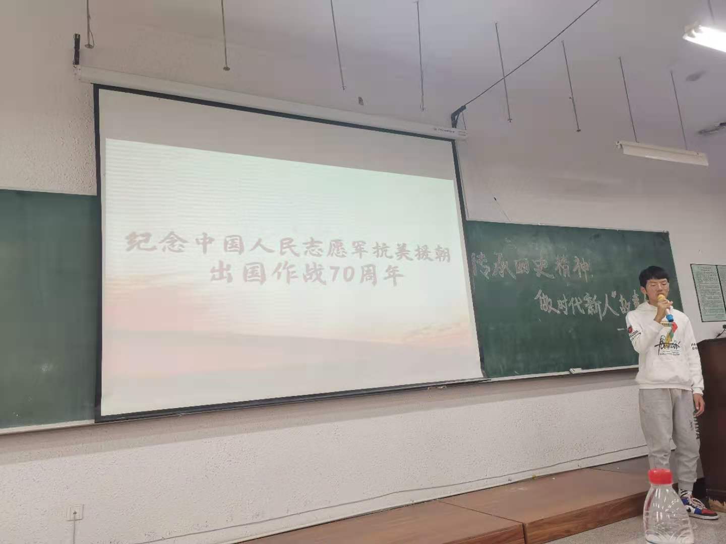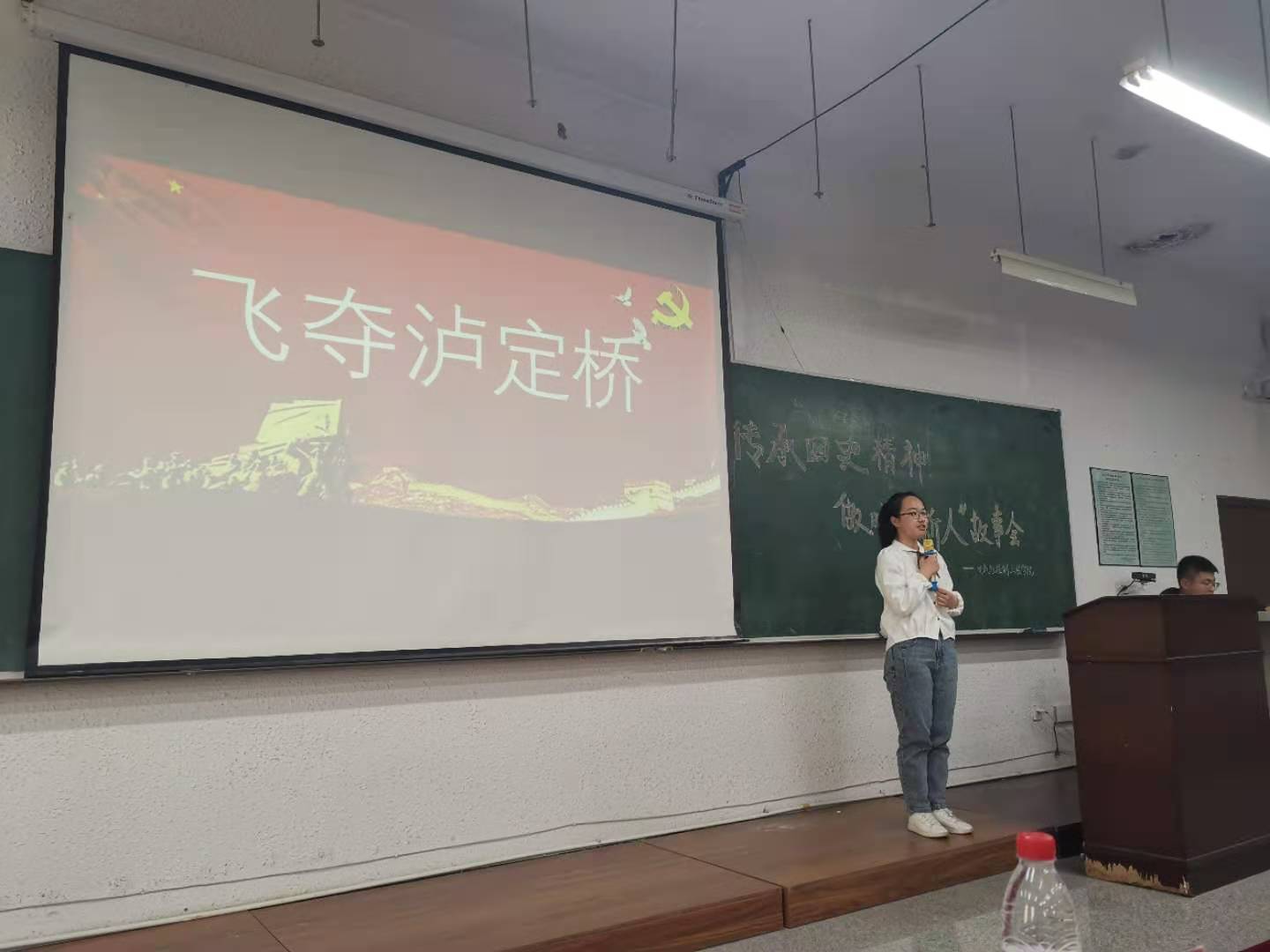 宣讲比赛中,自动20-1班姜淋译同学饱含深情的讲述了《金钢英雄——邱少云》的故事;测控20-2班石腾宇则以《浴血金刚川》为题向我们讲述了抗美援朝战争中的群体英雄故事;电网20-2班闫宇婷以其清欣流畅的语调以《马牧歌声》为题娓娓讲述了《游击队之歌》的由来;测控20-2班吴昊慷慨激昂地将革命英雄黄继光的故事与同学们分享;电气20-1班佟欣虽然讲的也是抗美援朝战争中的英雄故事,但她抑扬顿挫的讲解、《长律湖的冰雕》的唯美画面和优美典雅的背景音乐把英雄的形象衬托得更加悲壮;电气20-3班刘怡兵栩栩如生地讲述了《飞夺泸定桥》的精彩故事。自动20-4班林园梦则用《致敬英雄孙占元》表达了对革命英雄的赞美之情。电网19-1宋昌泽将改革开放总设计师邓小平春天的故事讲述得生动形象、引人深思。