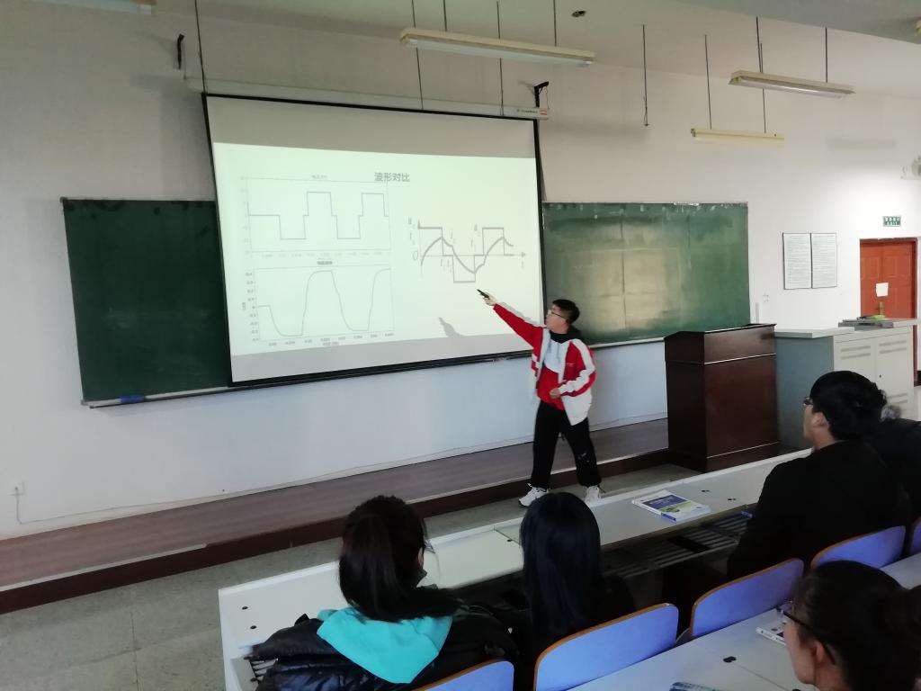 王继强老师为同学们讲解了Matlab软件的功能、安装环境及其Simulink模块在电力电子技术中、电机控制系统中的应用,讲座的主要内容包含基本的电路电子器件、整流电路、逆变电路、降压斩波电路等电路的仿真。使同学能够针对智能电气设备设计与制造出现的复杂电气与控制工程问题,利用恰当的工程软件对其进行分析、计算、模拟、仿真、预测, 践行了成果导向(OBE)为和形成性评价核心的教育理论。为了让学生更加直观的了解讲座内容,王继强老师还邀请学生进行了个人成果展示,通过实践来阐述Matlab/Simulink在电力电子以及电机控制系统中如何应用。
