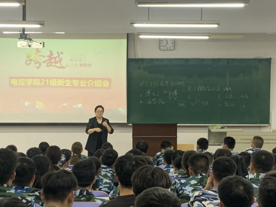 闫孝姮老师首先播放电气工程与智能控制专业优秀校友为新生加油打气的视频,激发学生的求知欲和好奇心。其次介绍电气工程与智能控制专业发展历史和专业概论,它是一个强弱电结合的宽口径专业,致力于培养电力系统智能装备设计、制造与维护的高级专业技术人才。最后,她祝愿每一位学生都能在四年的学习中收获满满!