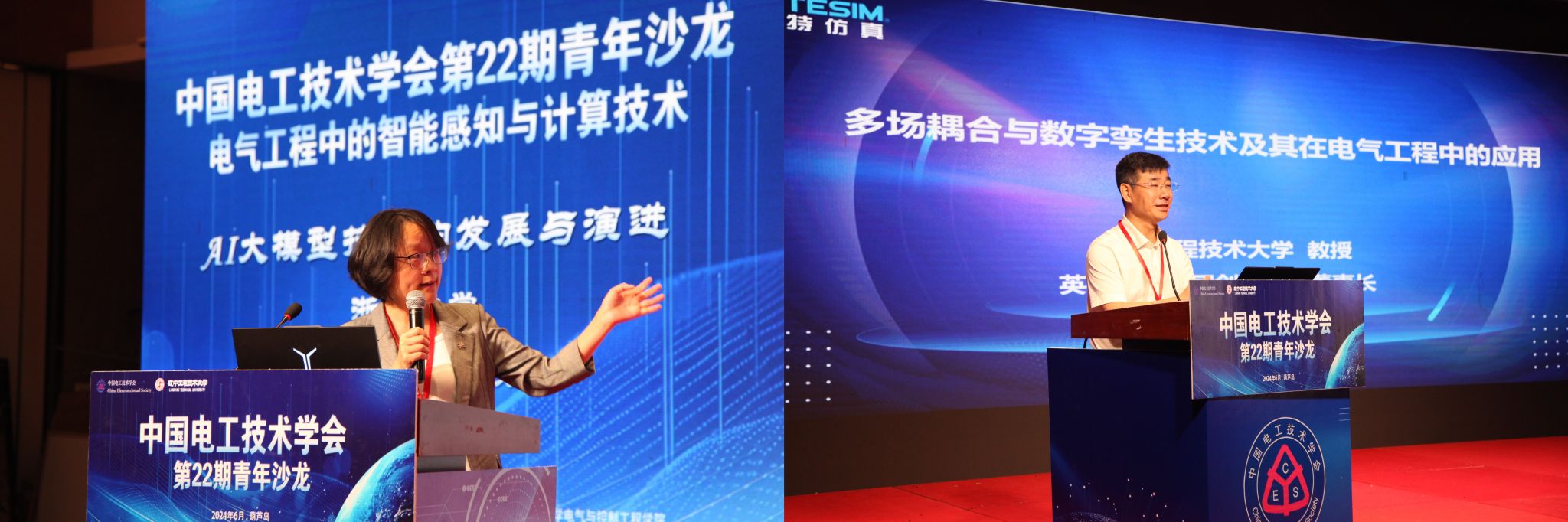 沙龙非常荣幸地邀请到国家特殊支持人才计划领军人才、东北电力大学穆钢教授和国际知名电磁场专家法国索邦大学任卓翔教授担任大会主席。此次会议特别邀请辽宁工程技术大学兼职博导、浙江大学齐冬莲教授和英特仿真创始人、国家特殊支持人才计划领军人才、辽宁工程技术大学张群教授做资深专家主旨报告,资深专家主旨报告环节由辽宁工程技术大学发展规划与学科建设处处长代树红教授主持。齐冬莲教授以“AI大模型技术的发展与演进”为题,分享了AI大模型技术的发展历程以及大模型的核心技术支撑与成功范例,深入分析了AI大模型技术发展带来的挑战和机遇。张群教授以“多场耦合与数字孪生技术及其在电气工程中的应用”为题,介绍了多物理场耦合技术的最新的研究进展以及目前面临的技术瓶颈与挑战。