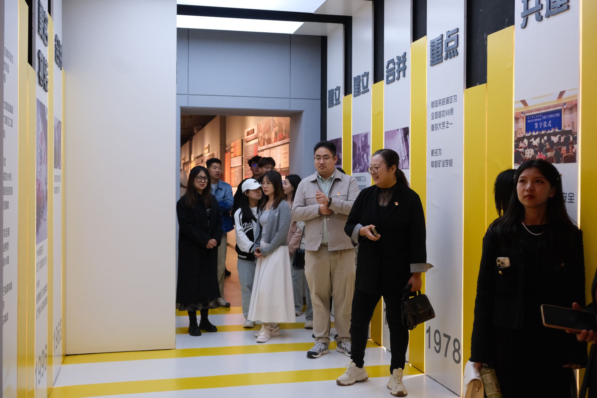 校史馆馆长顾丹向师生讲述了学校70余年办学发展的光辉历史,并深入解读 “太阳石精神”的深刻内涵。校史馆主展厅分为弁言、史忆、校友、未来四大部分7个篇章,从学校1949年作为中国共产党在全国建立的第一所煤炭工人干部学校艰苦创业,到1978年成为全国重点大学的高光时刻,再到如今朝着国内一流大学目标稳步迈进的发展历程。校史馆以图文并茂的信息和实物,展示了学校各个方面建设的精神风貌和杰出成就。