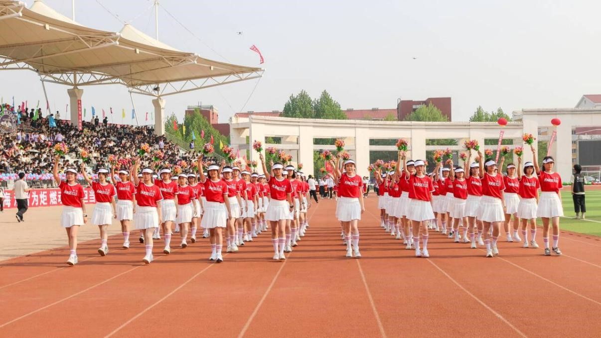 教师方阵以挺拔身姿亮相。平日里执鞭讲台的老师们身着统一运动服,步伐整齐划一,口号铿锵有力。队列中既有银发教师稳健迈步,也有青年教师活力洋溢,挥手间传递对学子的鼓励,用别样风采诠释“桃李不言,身教为先”的赛场魅力。