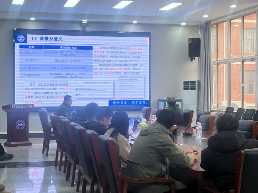 会上,我校本年度引进的中国科协青年托举博士人才、东北大学的白忠玉博士及连续三次获得博士生国家奖学金、辽宁工程技术大学的李昊博士做学术报告。青年教师白忠玉首先分享了自主水下机器人视觉技术的发展现状,并结合个人研究成果着重对风格迁移等图像辨识方法进行了说明,最后结合我校地矿特色展望了机器人视觉技术的应用前景。青年教师李昊系统地对煤岩受载破裂过程中电磁辐射能的演化机理进行了说明,并结合“深地”开采时煤岩动力灾害的新特点阐明了利用电磁特征进行灾害监测的广阔前景。