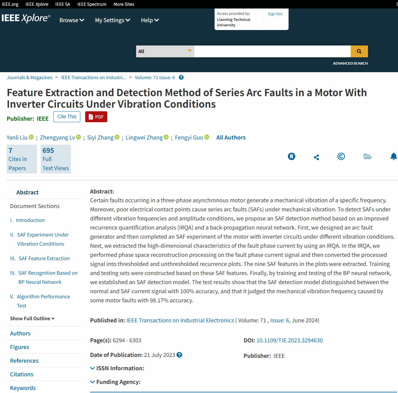 刘艳丽教授团队在《IEEE Transactions on Industrial Electronics》发表研究论文