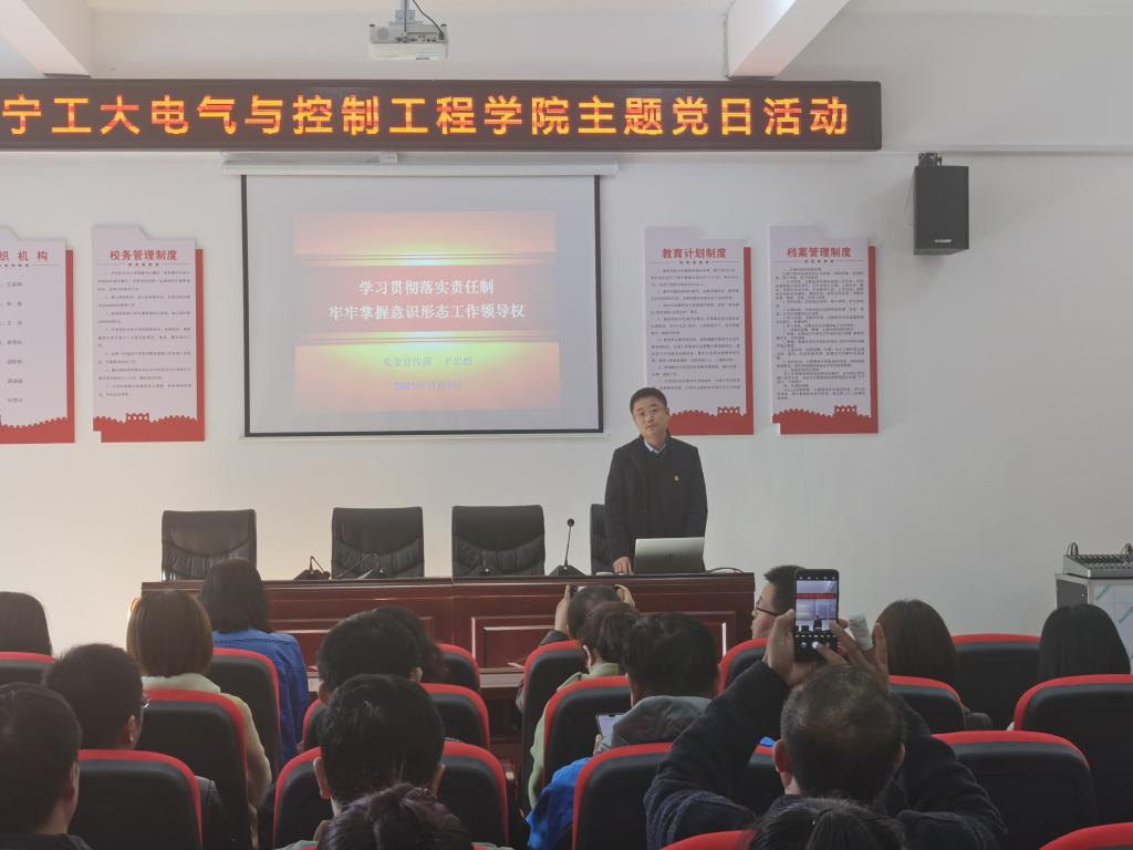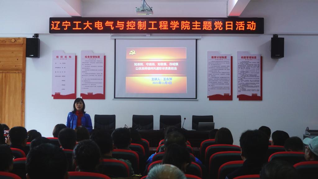 参观结束后,校党委委员、宣传部部长尹忠恺在报告厅围绕《学习贯彻落实责任制 牢牢掌握意识形态工作领导权》的主题为全体党员讲党课。尹老师指出,要着力把握意识形态工作关键领域和环节,密切关注意识形态领域风险隐患,确保各类宣传文化阵地可管可控。接下来,校纪委委员、校党校常务副校长王永萍以《知准则、守底线、知敬畏、存戒惧,以优良师德师风履职尽责勇担当》为题,讲了一堂深入浅出的师德师风专题党课。王老师指出,每位教师都要以具有崇高师德为职业要求,立足岗位、结合本职工作,要始终坚定理想信念、坚定政治方向,用心用情、全心全意为学生做好服务。要紧密结合党史学习教育,“四史”宣传教育,切实增强“四个意识”、坚定“四个自信”、做到“两个维护”,不忘初心、砥砺前行,勇担新时代的使命任务。