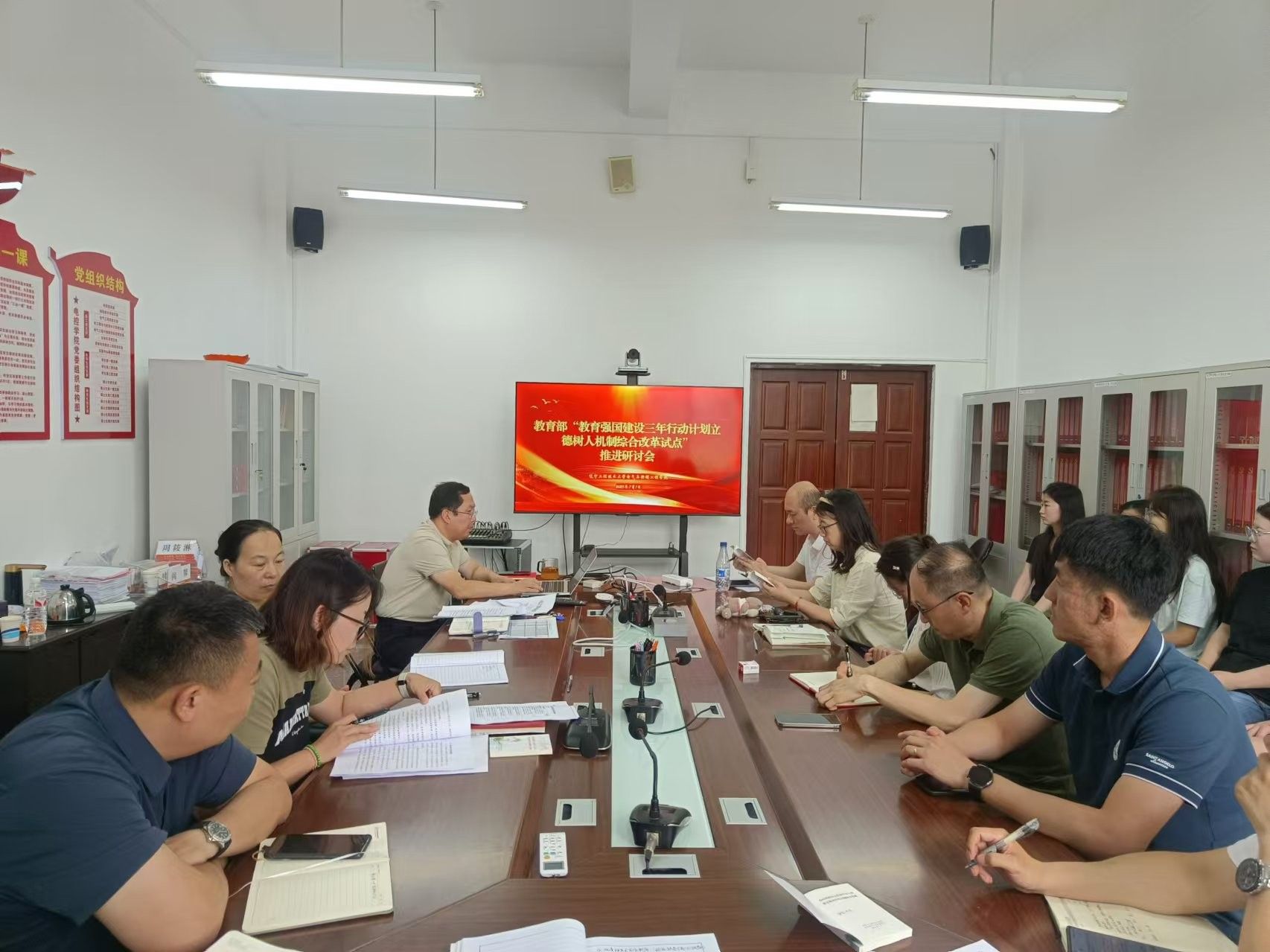 在静远225会议室召开教育部“教育强国建设三年行动计划立德树人机制综合改革试点”推进研讨会,学院党政领导班子、中层干部和党支部书记参加会议。