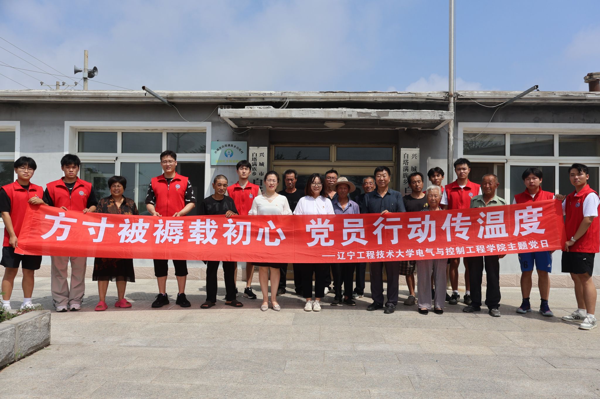 7月4日,周书记与武老师带领学生党员代表一行前往兴城市白塔村村委会,向特殊困难群体捐赠了一批生活物资,具体包括被褥115件、电器50件及衣物80件。捐赠仪式结束后,中共白塔满族乡白塔村党委书记范玉成为在场的师生们讲授了一堂生动的党课。