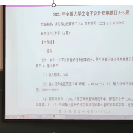 本次讲座主要讲解全国各种电子竞赛的比赛相关内容及具体要求,竞赛对参赛者最基础的知识要求,并讲解了参加大赛的同学主要的学习什么课程、应该准备哪些模块。讲座中针对竞赛题目涉及到的各类元器件的性能和使用方法进行讲解。通过对大赛及器件的了解,同学们的参赛热情也被大大激发,讲座气氛非常热烈。