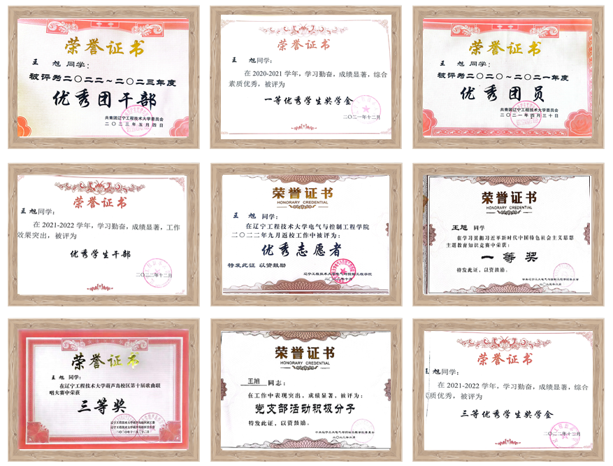 2020年的9月,王旭带着喜悦与未知进入了大学的校园。在学院的迎新晚会上、以及国家奖学金的答辩现场,见到了优秀的学长学姐学姐发言,看到他们的闪光点后,在那时起他便下定决心,努力学习,积极与优秀的学长学姐交流,在他们身上学习经验,在大一上学期完成后,他的成绩位列专业第二名,他发现自己的努力还不够多,于是纠正了自己爱拖延的坏毛病,卸载抖音等消耗时间的软件,在大一学期结束后位列专业第一名。