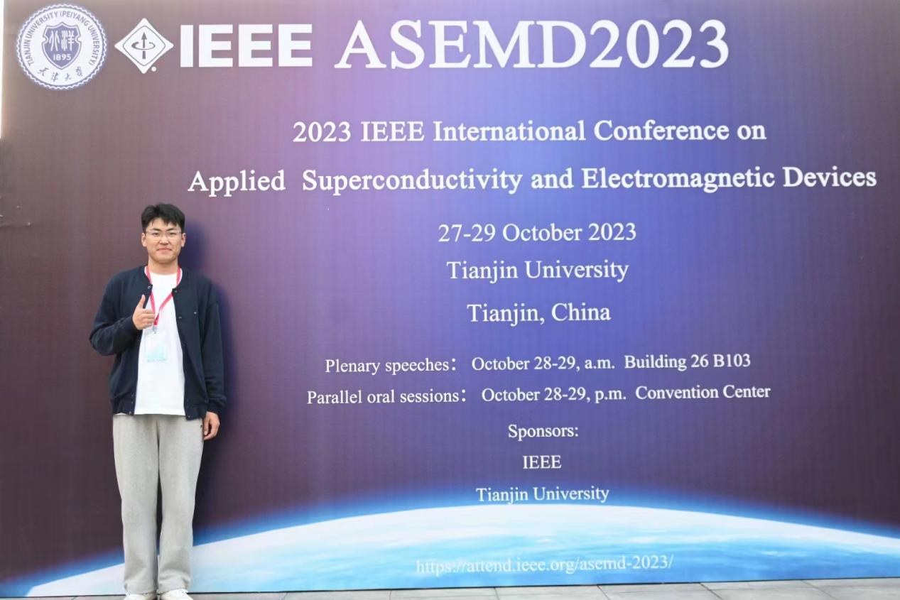 兴趣是王旭最好的导师,他十分热爱物理学,尤其是电磁学部分,一直对电磁场感兴趣的他通过不断地温故知新有幸被邀请参加IEEE国际超导与应用电磁装置技术国际学术会议,并且在会议上发表文章,并对会上交流的学者简要介绍自己的成果,与此同时他参与的创新创业项目也顺利结题。