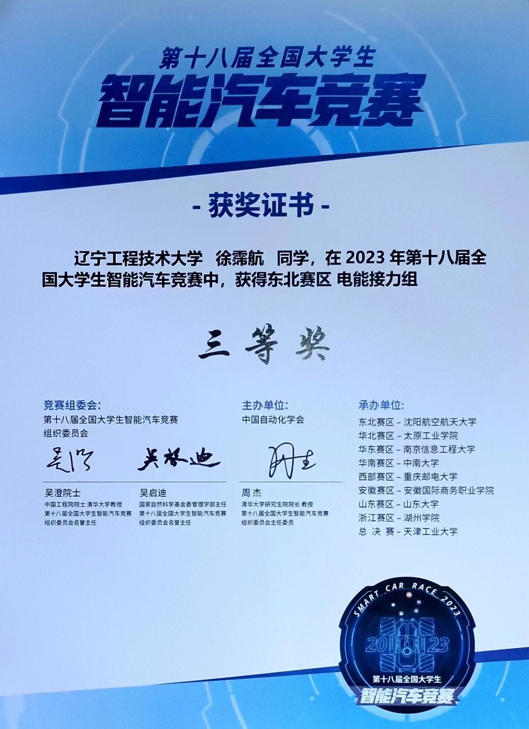 3 2023届智能汽车竞赛 奖项:省级三等奖 指导教师:刘春喜