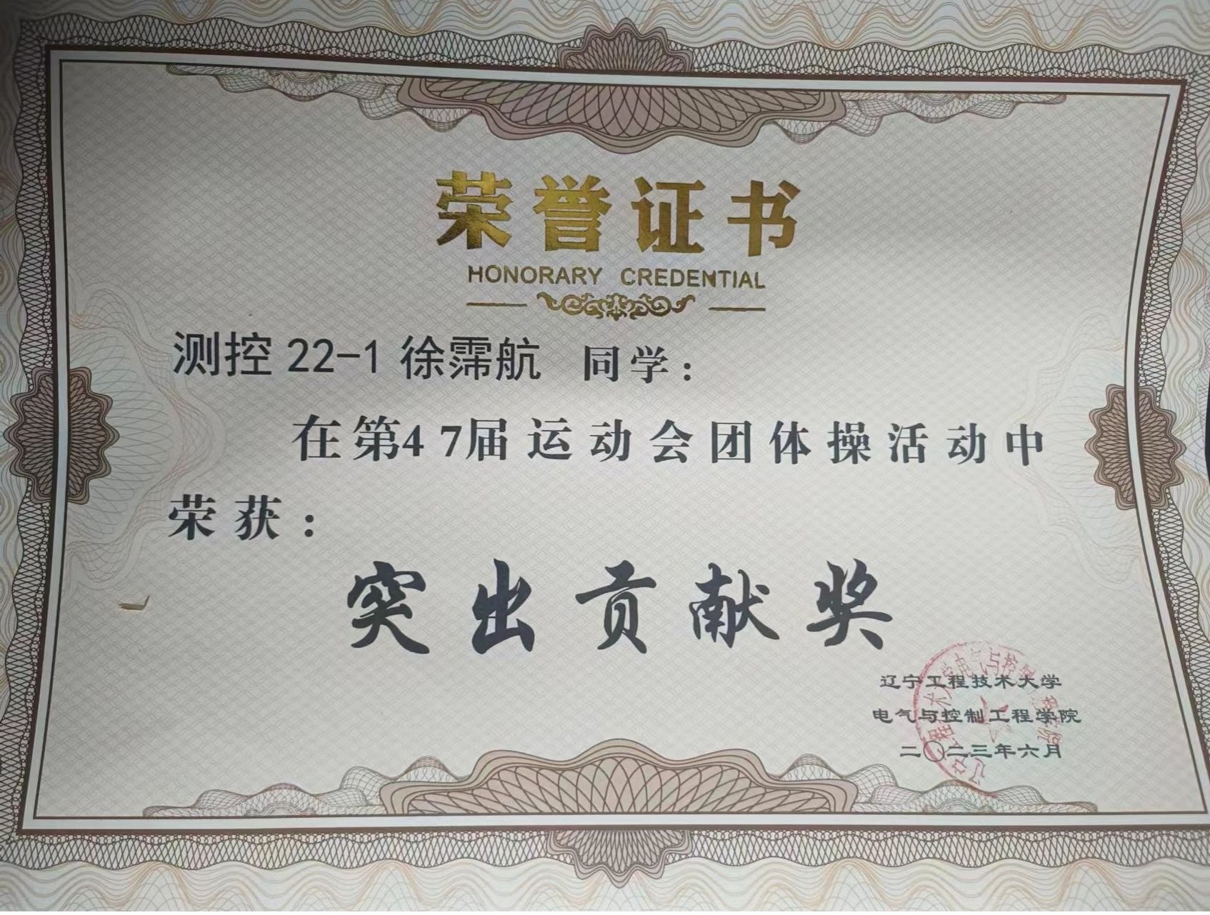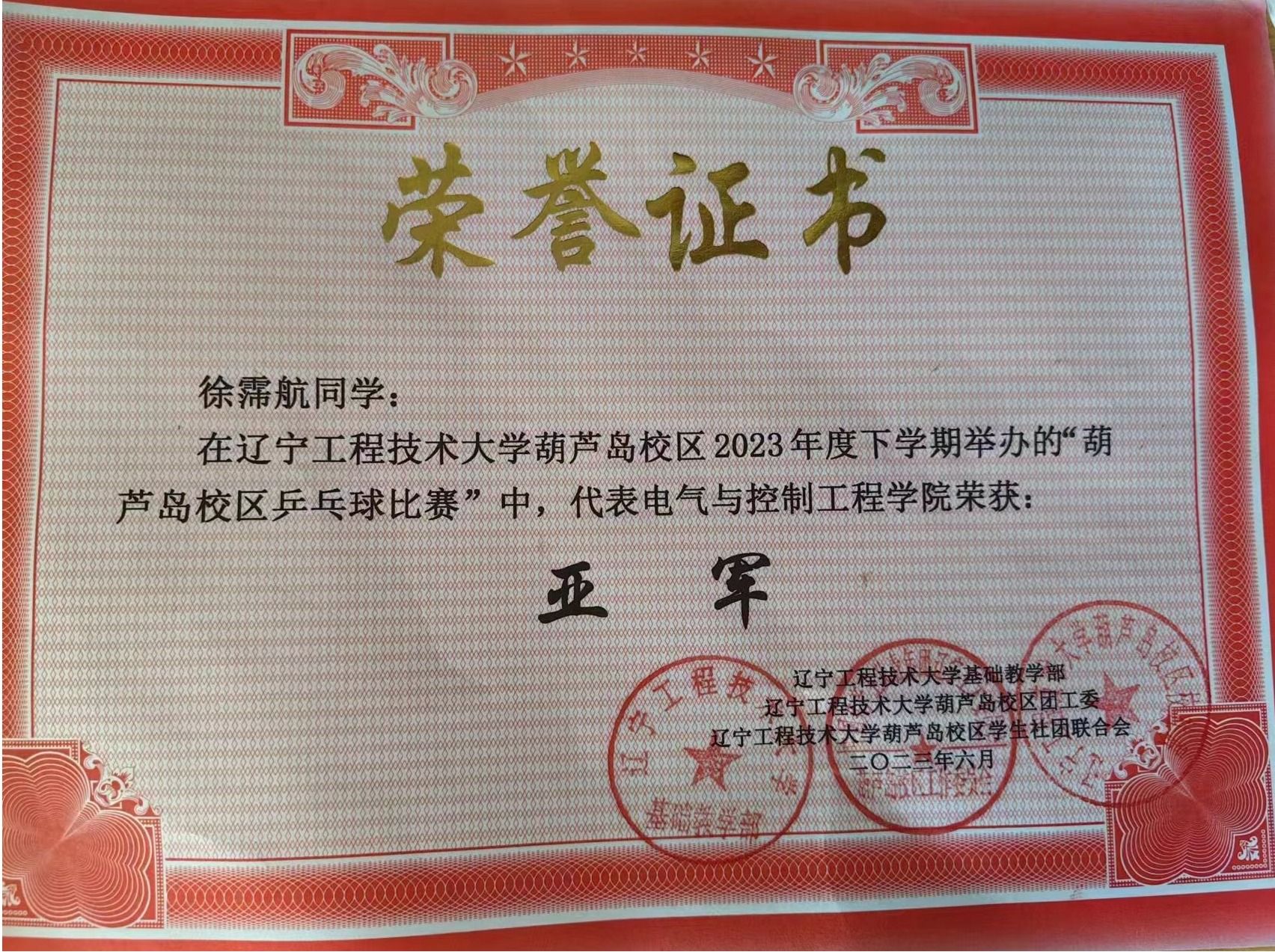 团体操突出贡献奖、校级乒乓球比赛亚军。