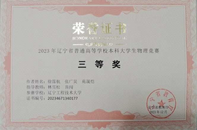 4 2023届全国大学生物理实验竞赛 奖项:省级三等奖 指导教师:林雪松