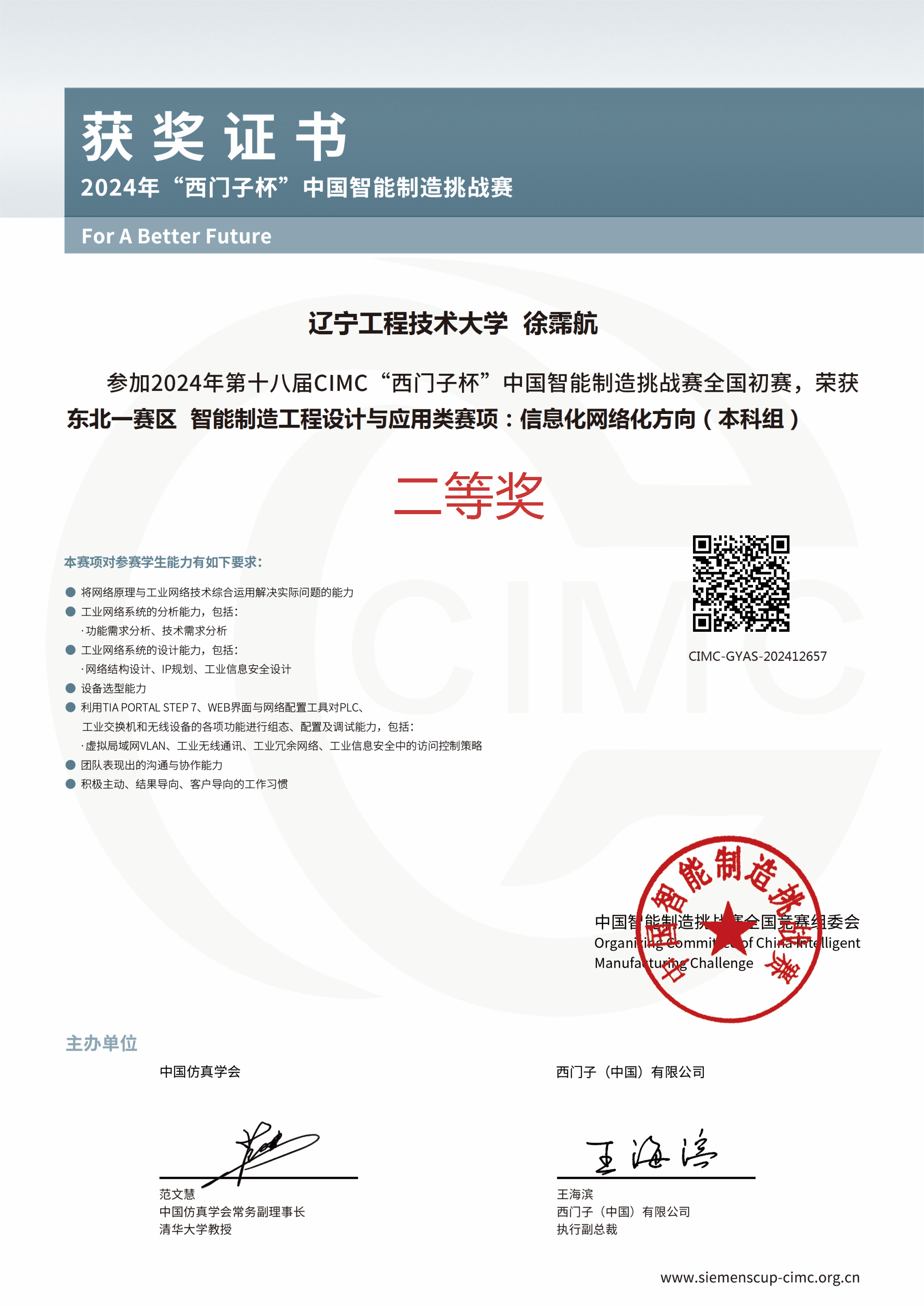 5 2024届西门子智能制造挑战赛 奖项:东北赛区二等奖 指导教师:闫孝姮