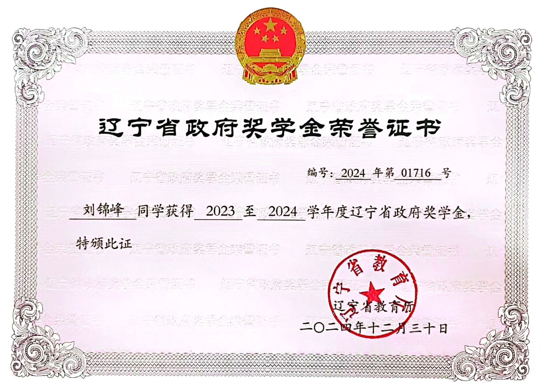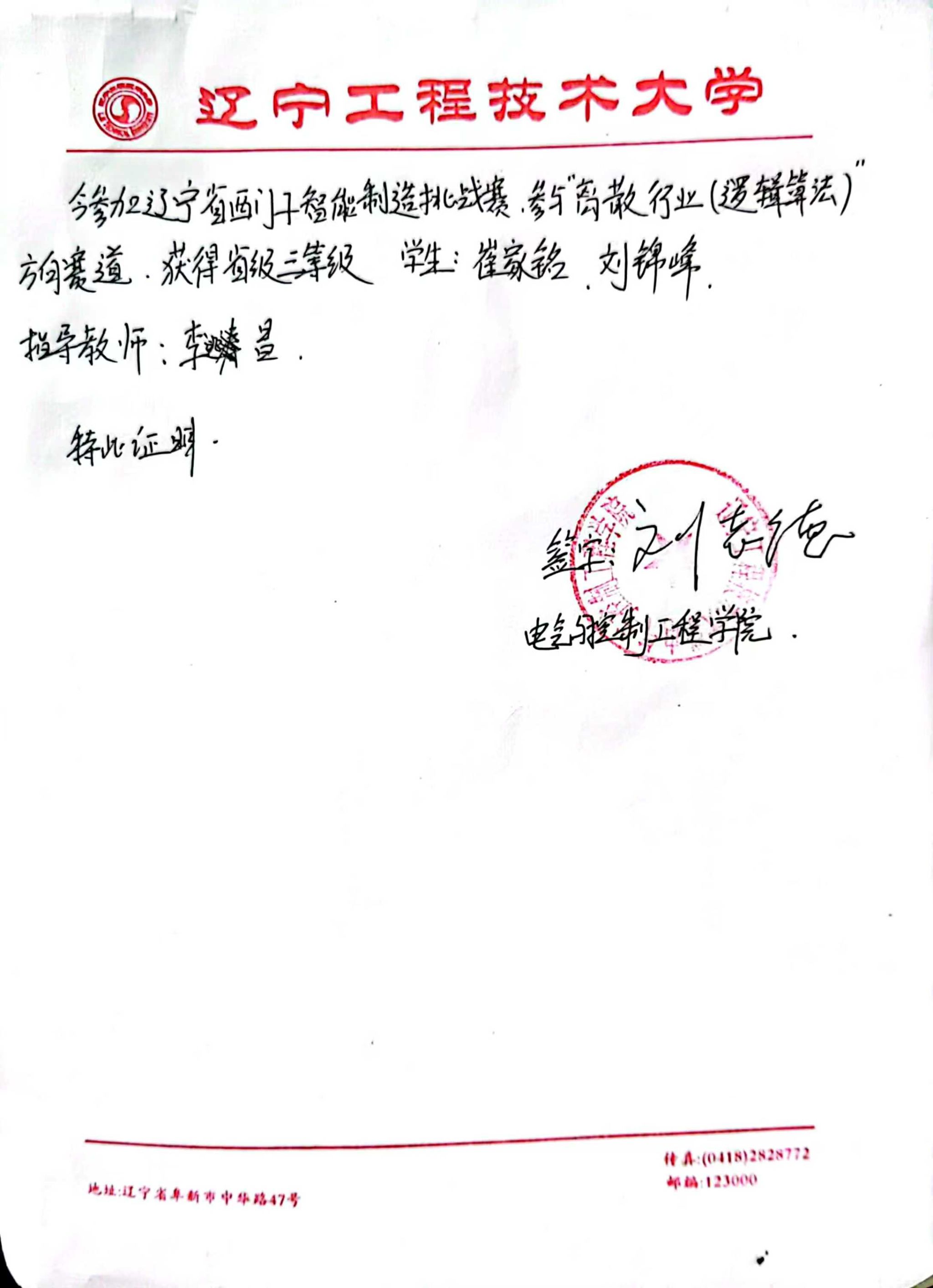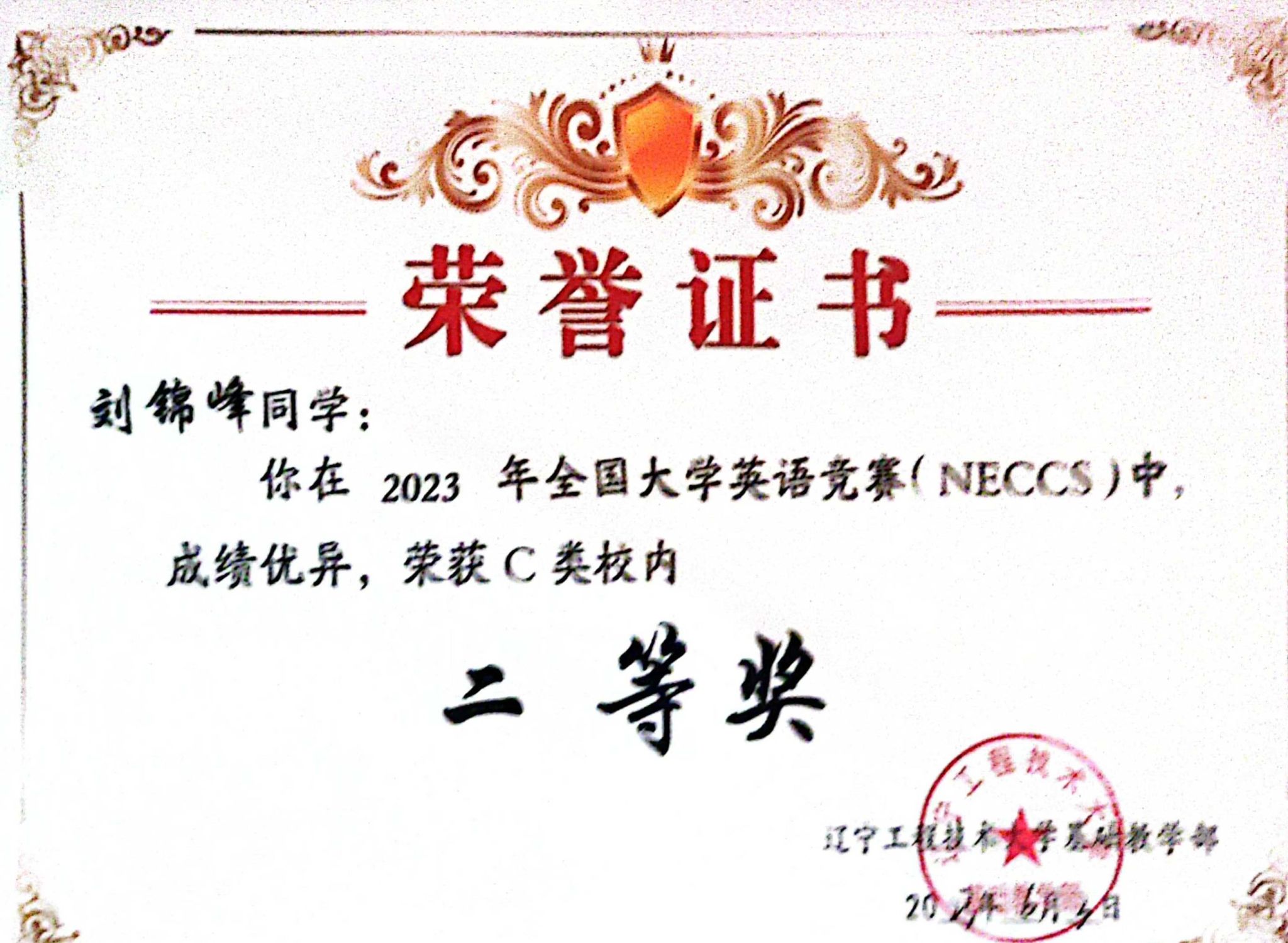 奖学金类:曾获辽宁省政府奖学金、校二等优秀学生奖学金2次,获得两次校三好学生。