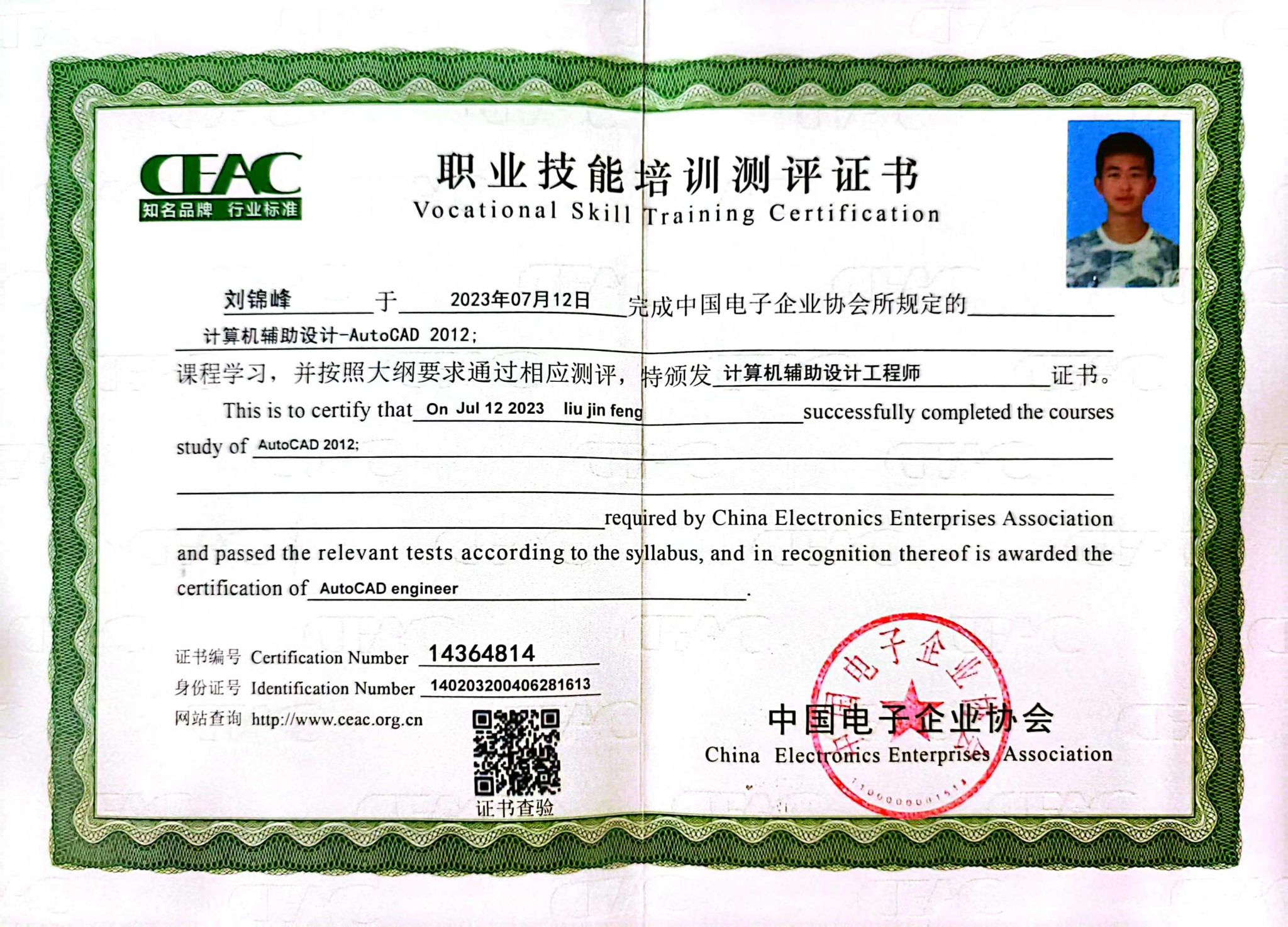 技能证书类:考取了英语四级证书,计算机三级证书,计算机辅助设计工程师证书