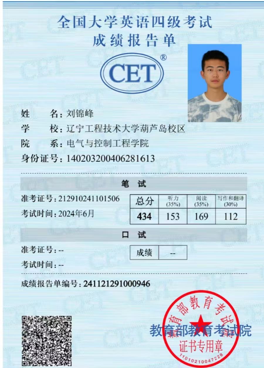 学业成绩方面:2023-2024学年综合测评成绩排名专业第2名,学习成绩排名专业第2名(2/71),学分绩点为3.4767。