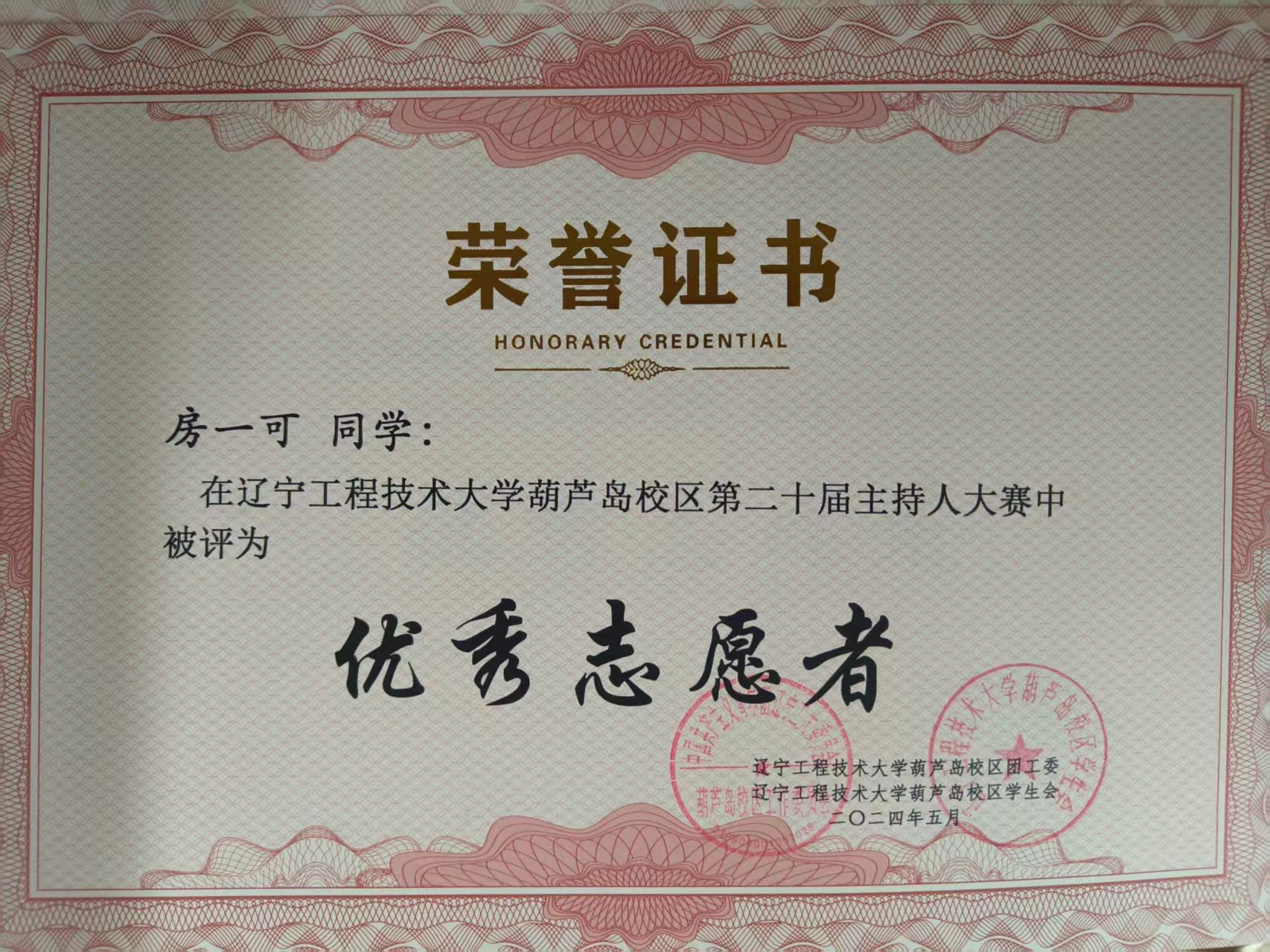 2023年,葫芦岛校区主持人比赛优秀志愿者。
