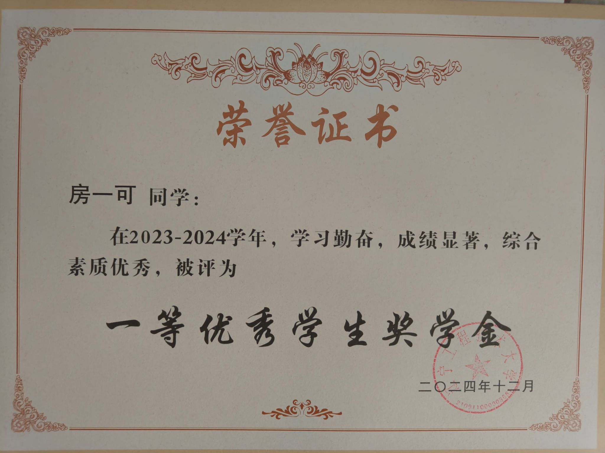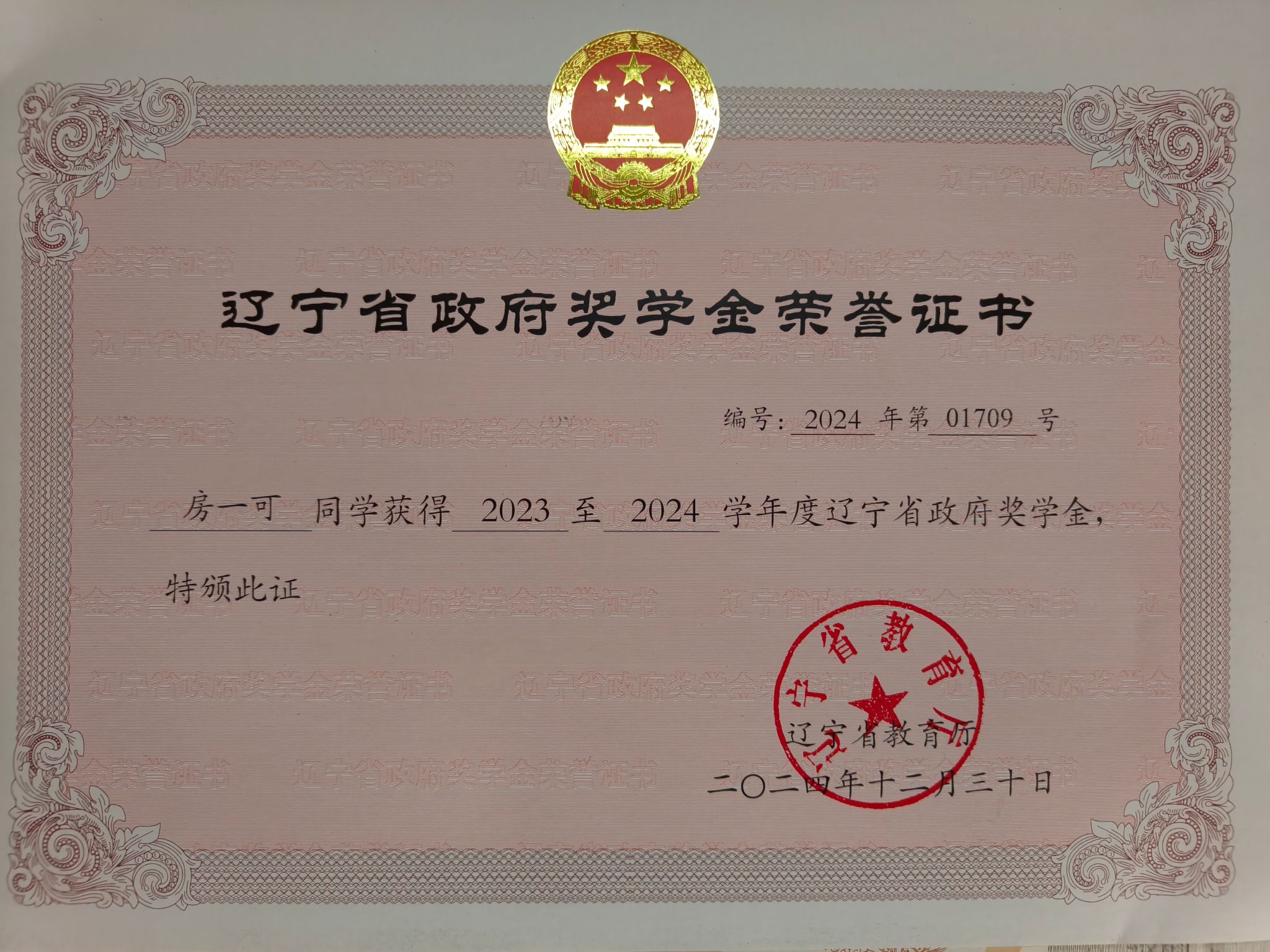 奖学金类:获得2023年省政府奖学金、校级一等优秀学生奖学金。