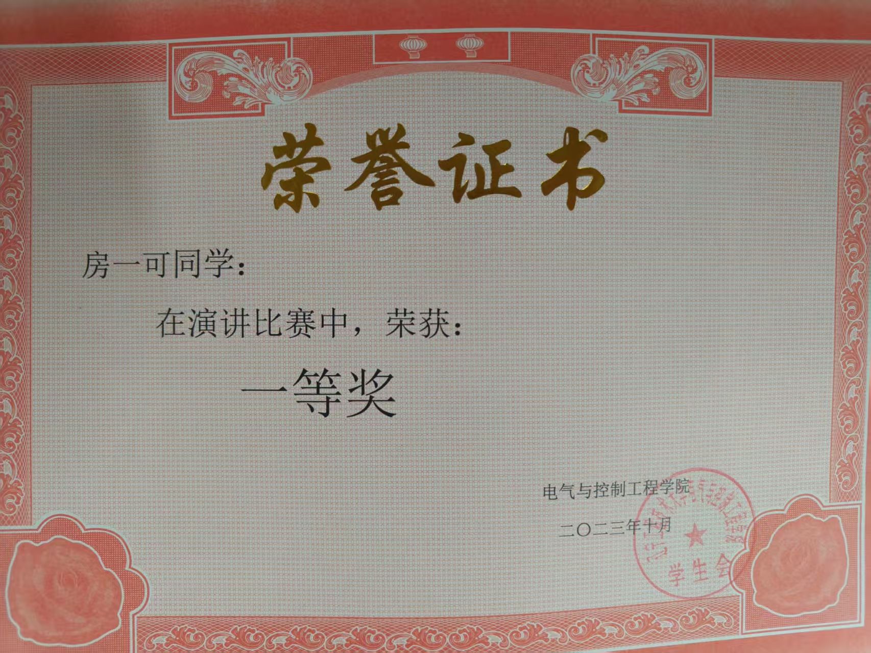 演讲比赛一等奖。