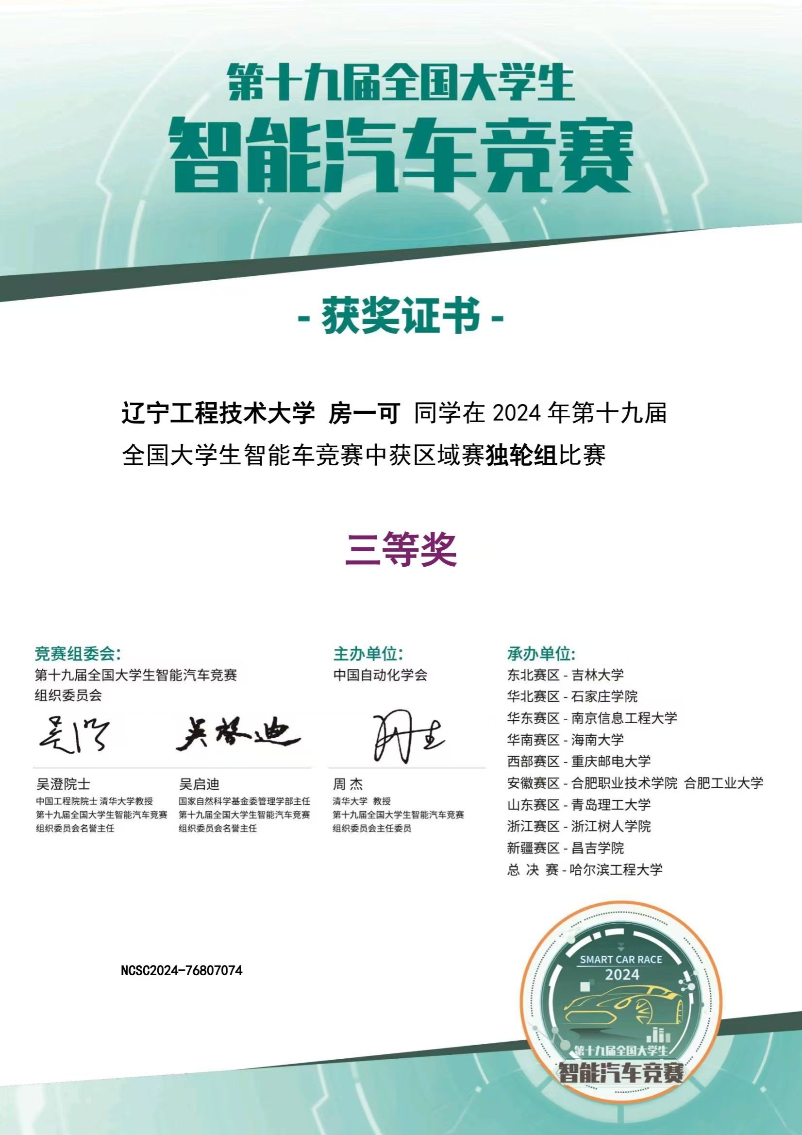 1 十九届大学生智能车竞赛 奖项:东北赛区三等奖 指导老师:施振雷