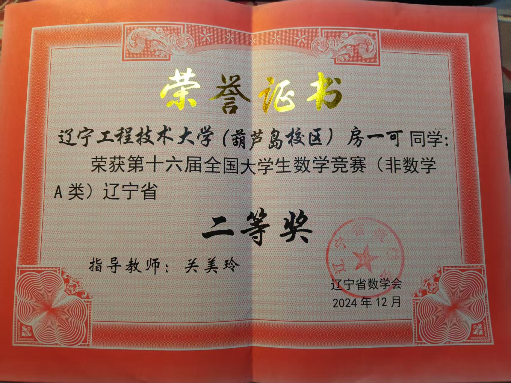 2 十六届大学生数学竞赛 奖项:辽宁省二等奖 指导老师:关美玲