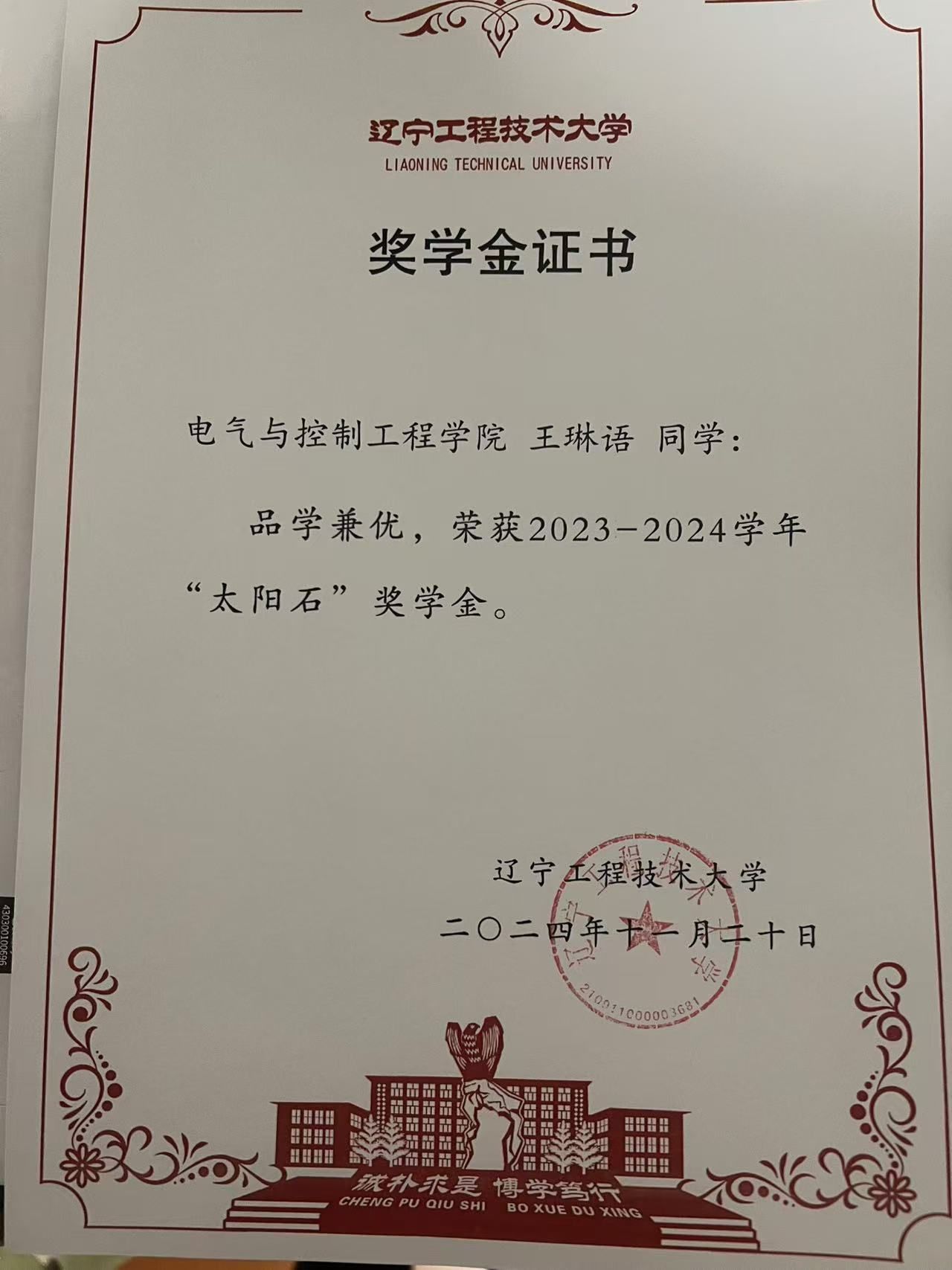 其他类:2024年,获得 “三好学生”荣誉称号。