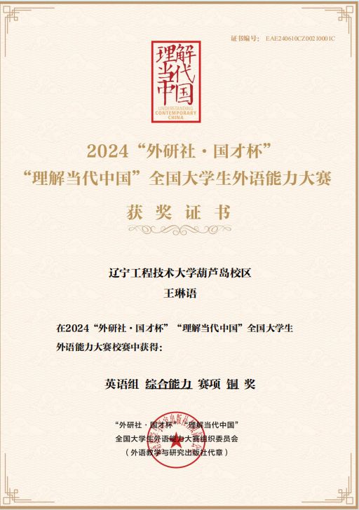 12 2024年全国大学生英语竞赛(NECCS) 奖项:校级二等奖