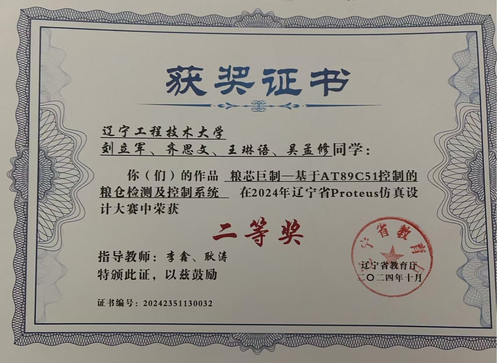 4 辽宁省Proteus仿真设计大赛 奖项:省级二等奖 指导教师:李鑫、耿涛