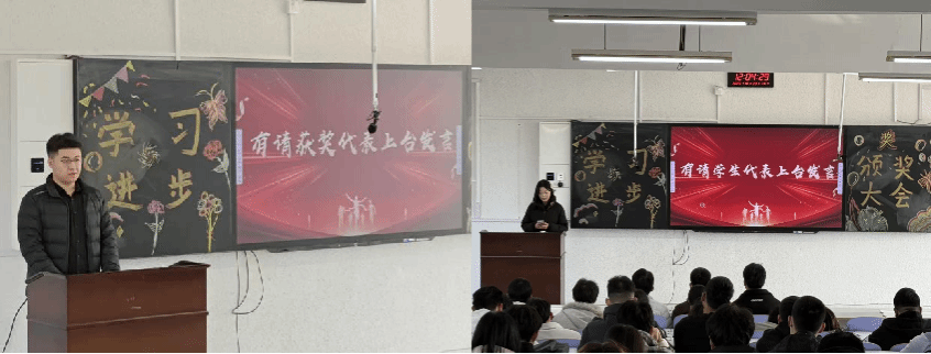 随后,电气23-11班获奖代表吴佳洋上台分享学习心得,他结合自身经历讲述调整学习状态的方法,呼吁同学们在学习中积极探索、互帮互助、共同进步。