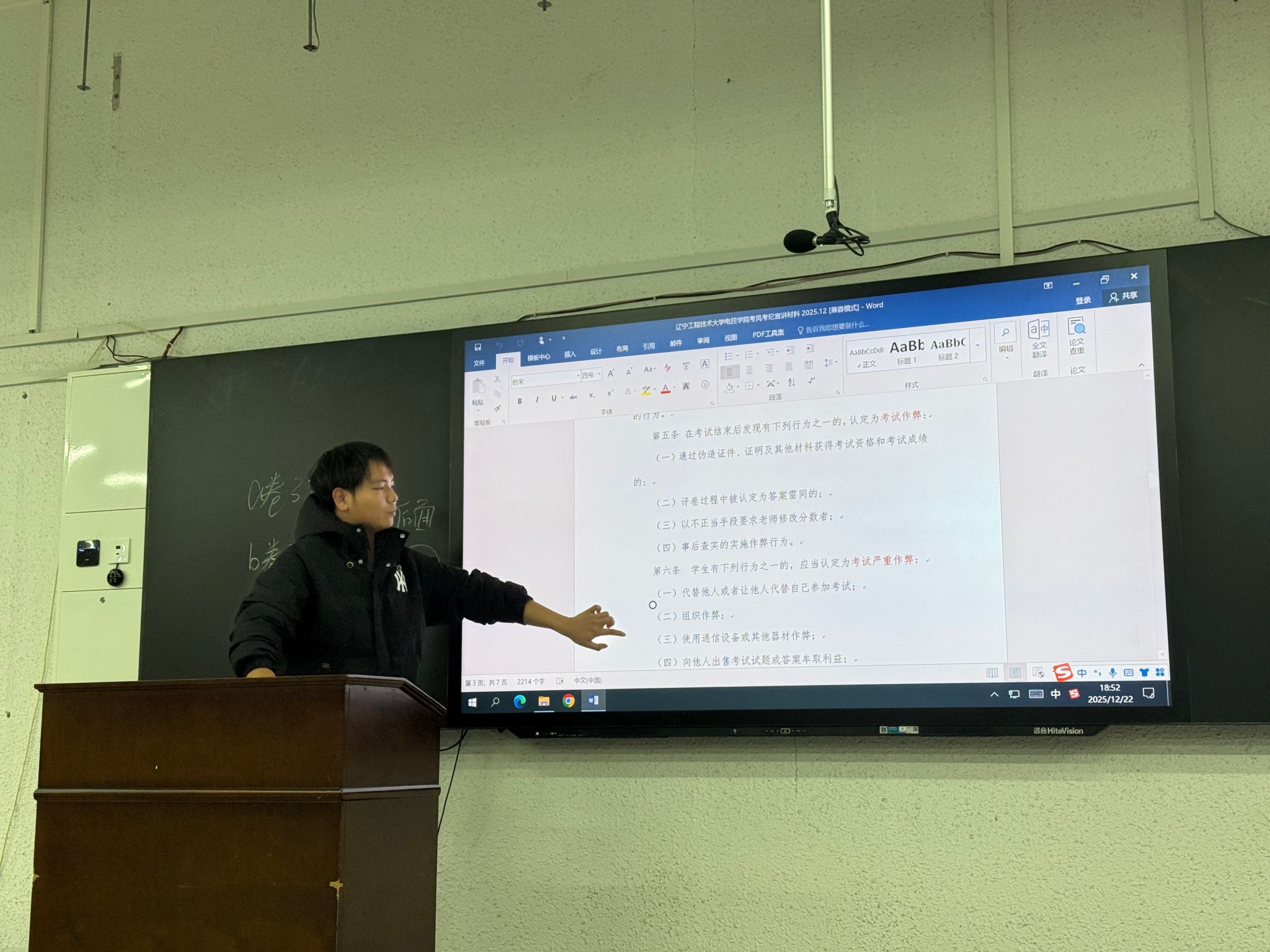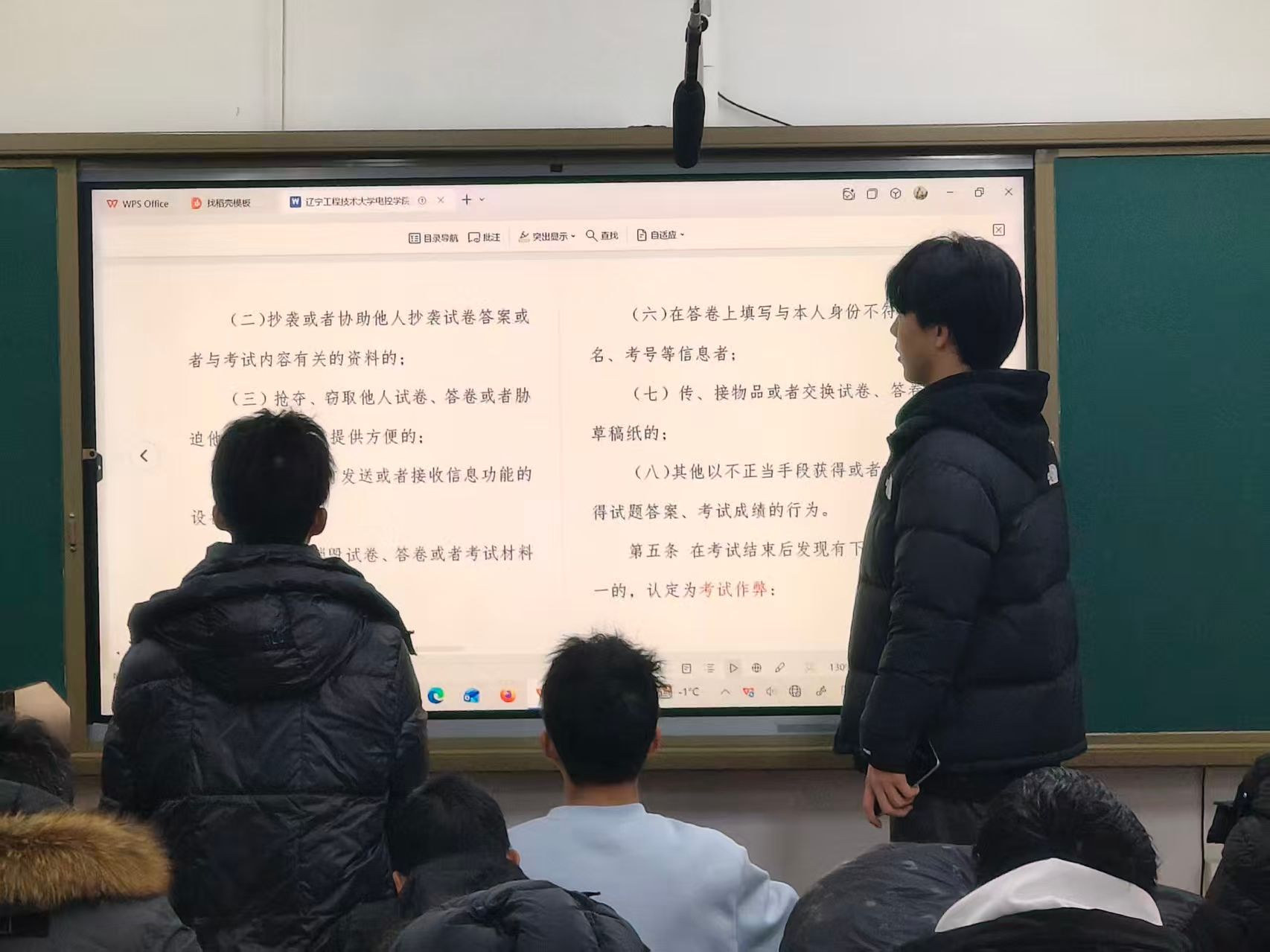 活动伊始,结合近期考试安排,志愿者们向同学们详细解读了《辽宁工程技术大学学生考试违规认定细则(修订)》部分内容与《辽宁工程技术大学学生违纪处分办法(修订)》部分内容,并通过列举典型案例,直观剖析了考试作弊行为带来的严重后果。